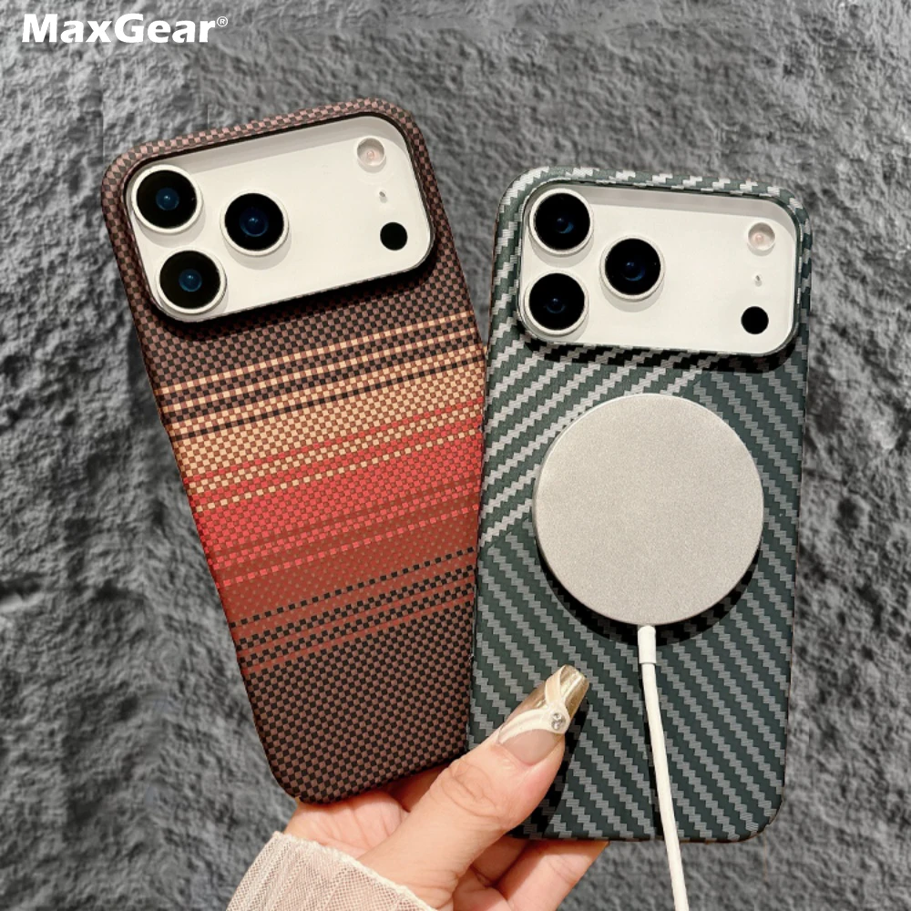 Funda de fibra de carbono mate para Magsafe para iPhone 17 Air 16 15 14 Plus 13 12 Pro Max 17Pro cubierta de armadura brillante de piel con carga inalámbrica