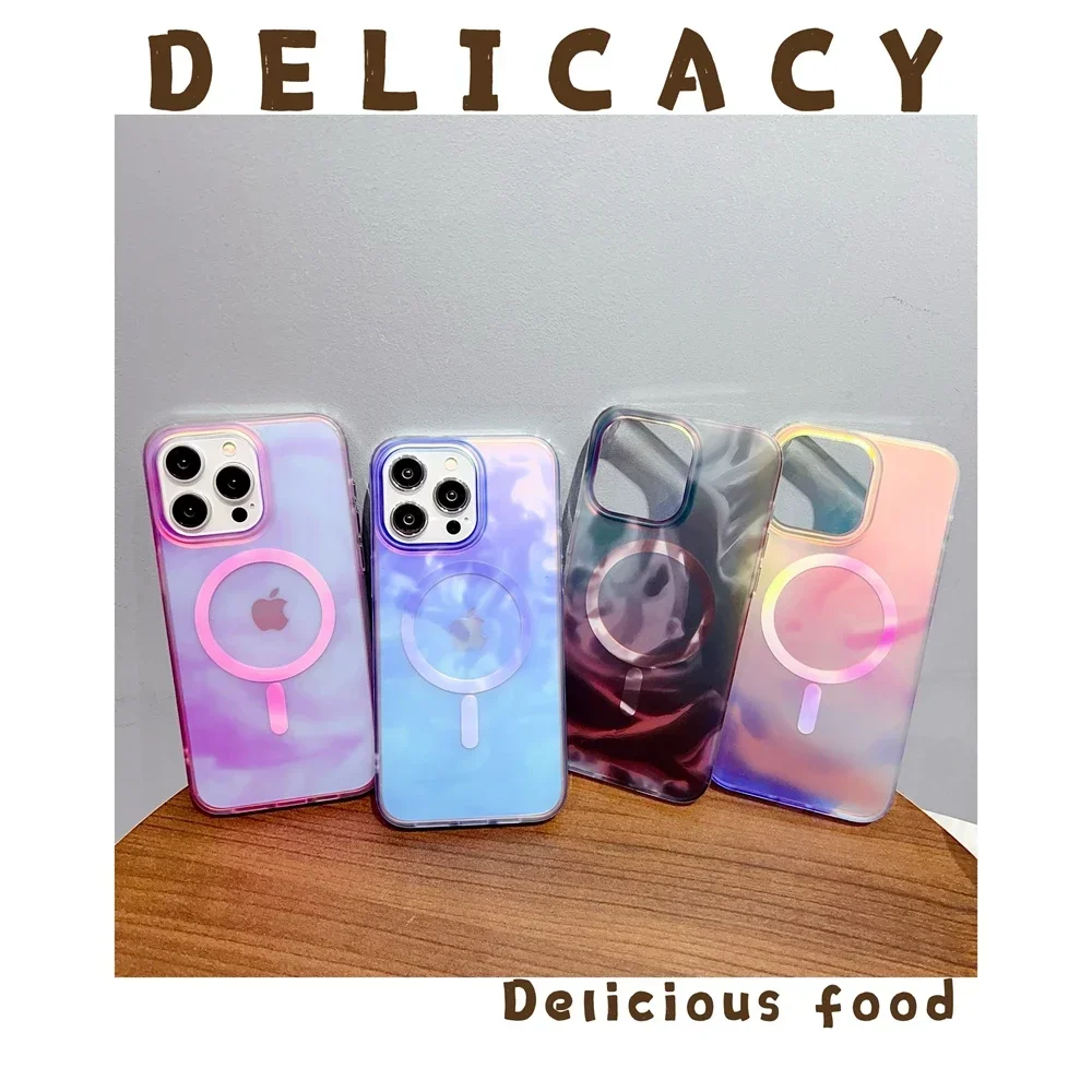 Comprar Funda Magsafe con gradiente de acuarela para iPhone, carcasa ultrafina de lujo con láser Aurora para iPhone 16 Pro Max 15 14 Pro Max 13 14 Pro Max