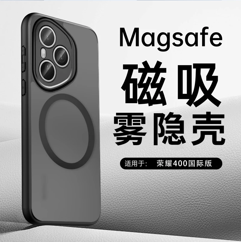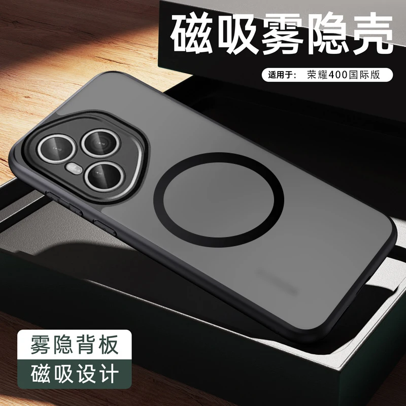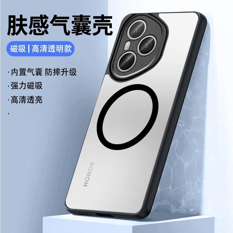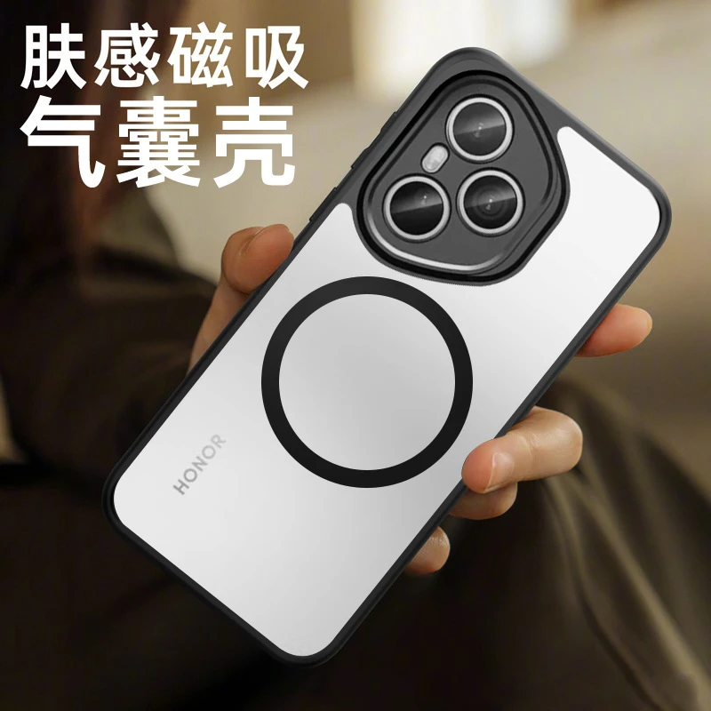 Funda Magsafe para Honor 400 Pro, Airbag magnético absorbente de piel, cubierta negra transparente anticaída para Huawei Honor 400 Pro