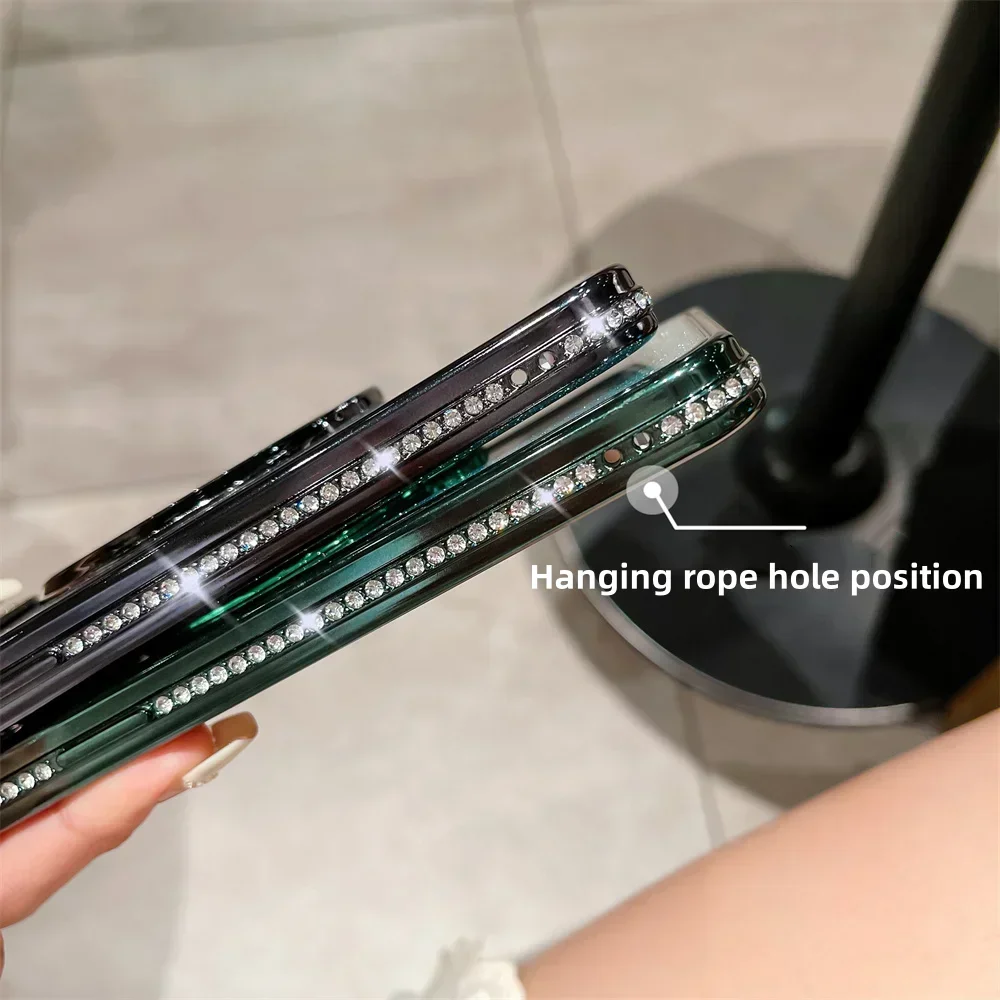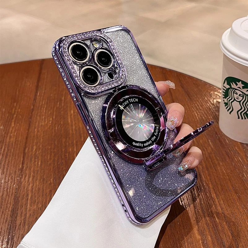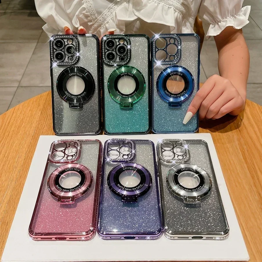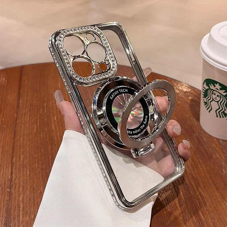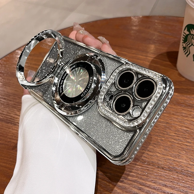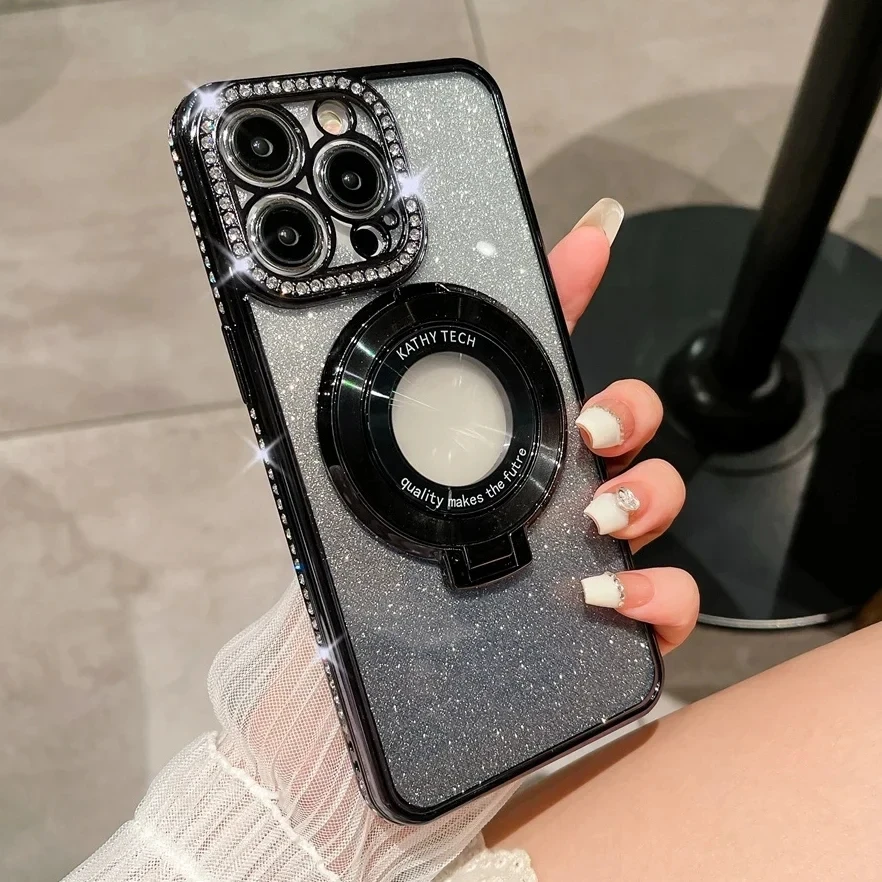 Funda Magsafe de lujo con diamantes brillantes para iPhone, carcasa de silicona suave con soporte magnético para iPhone 16, 15, 14, 13, 12, 11 Pro Max Plus