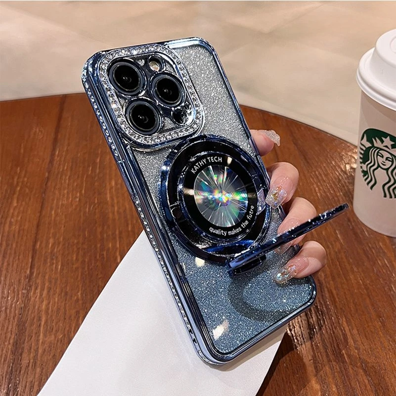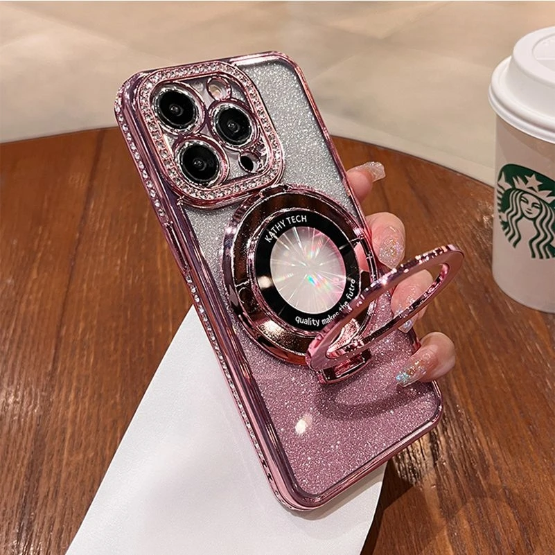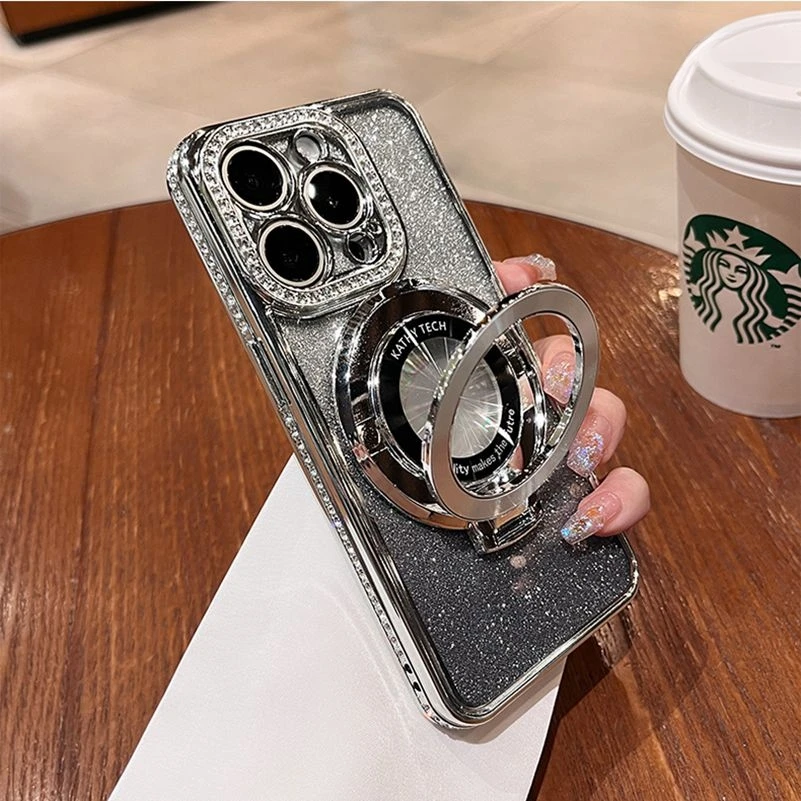 Comprar Funda Magsafe de lujo con diamantes brillantes para iPhone, carcasa de silicona suave con soporte magnético para iPhone 16, 15, 14, 13, 12, 11 Pro Max Plus