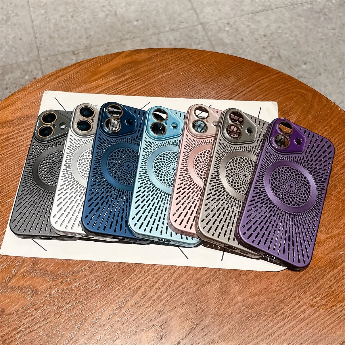 Comprar Funda Magsafe de lujo con disipación de calor para iPhone, Protector de lente ultrafino para PC, 12, 13, 14, 15, 16 Pro Max, 16 Pro