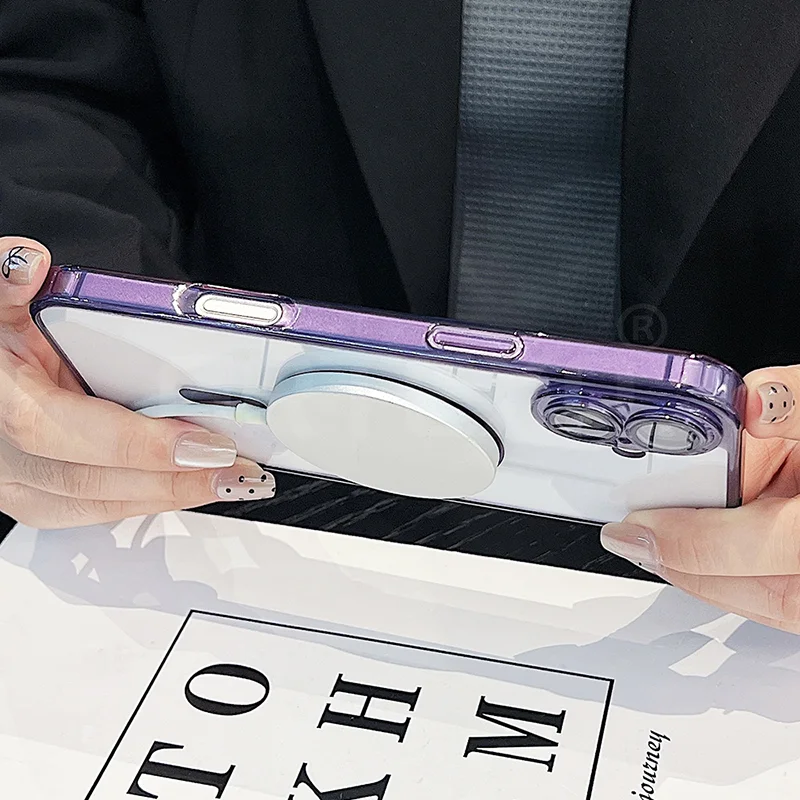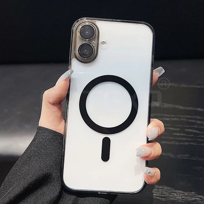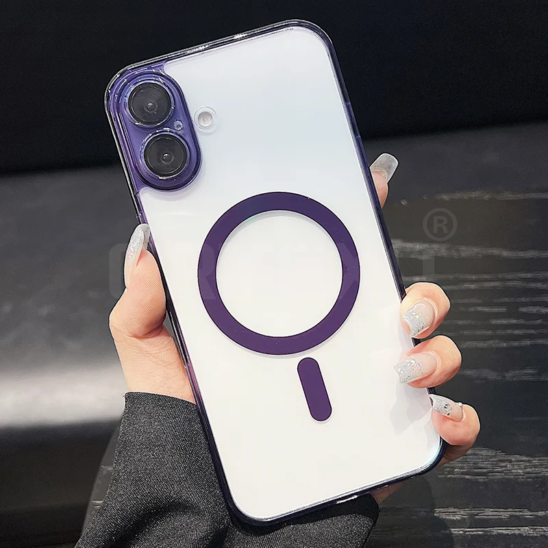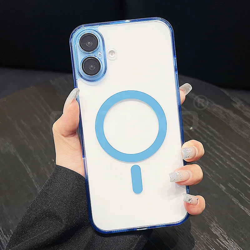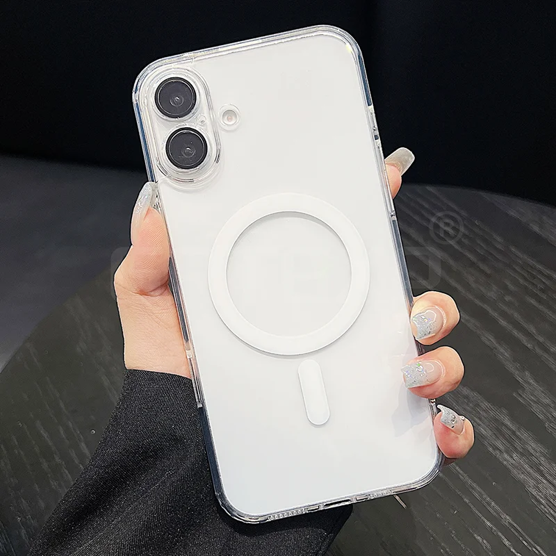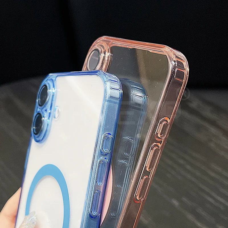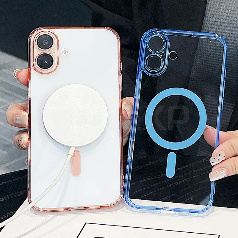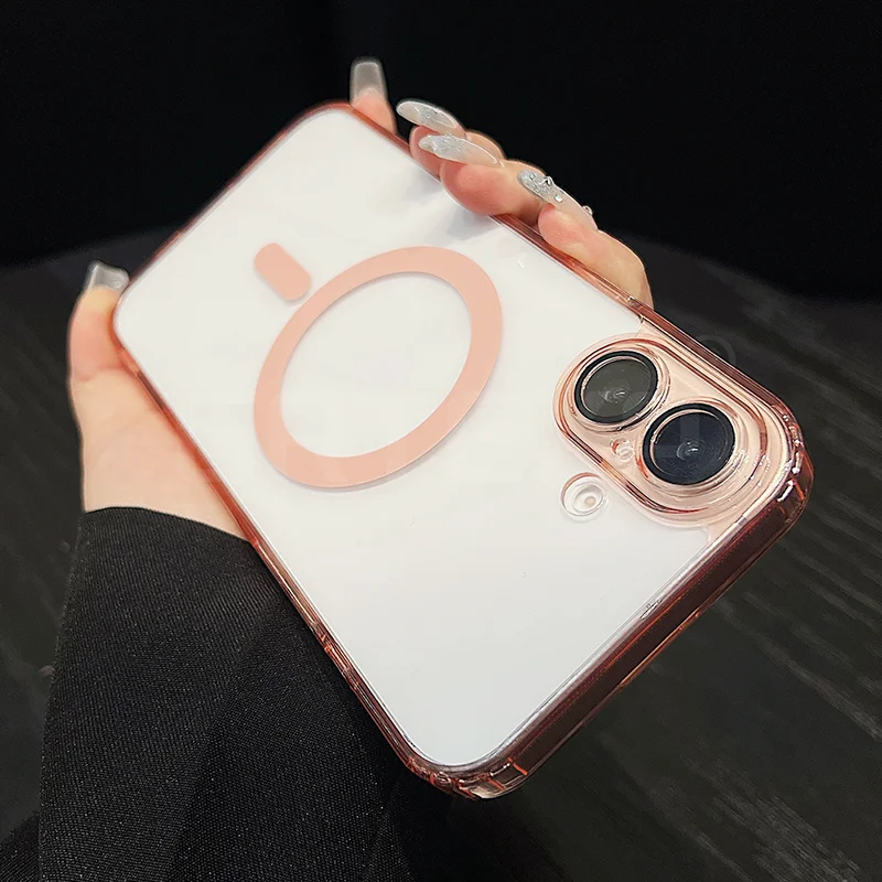 Funda Magsafe magnética transparente para iPhone 17/16/15/14/13/12/11 pro Max más carcasa de TPU suave y dura híbrida de Color caramelo
