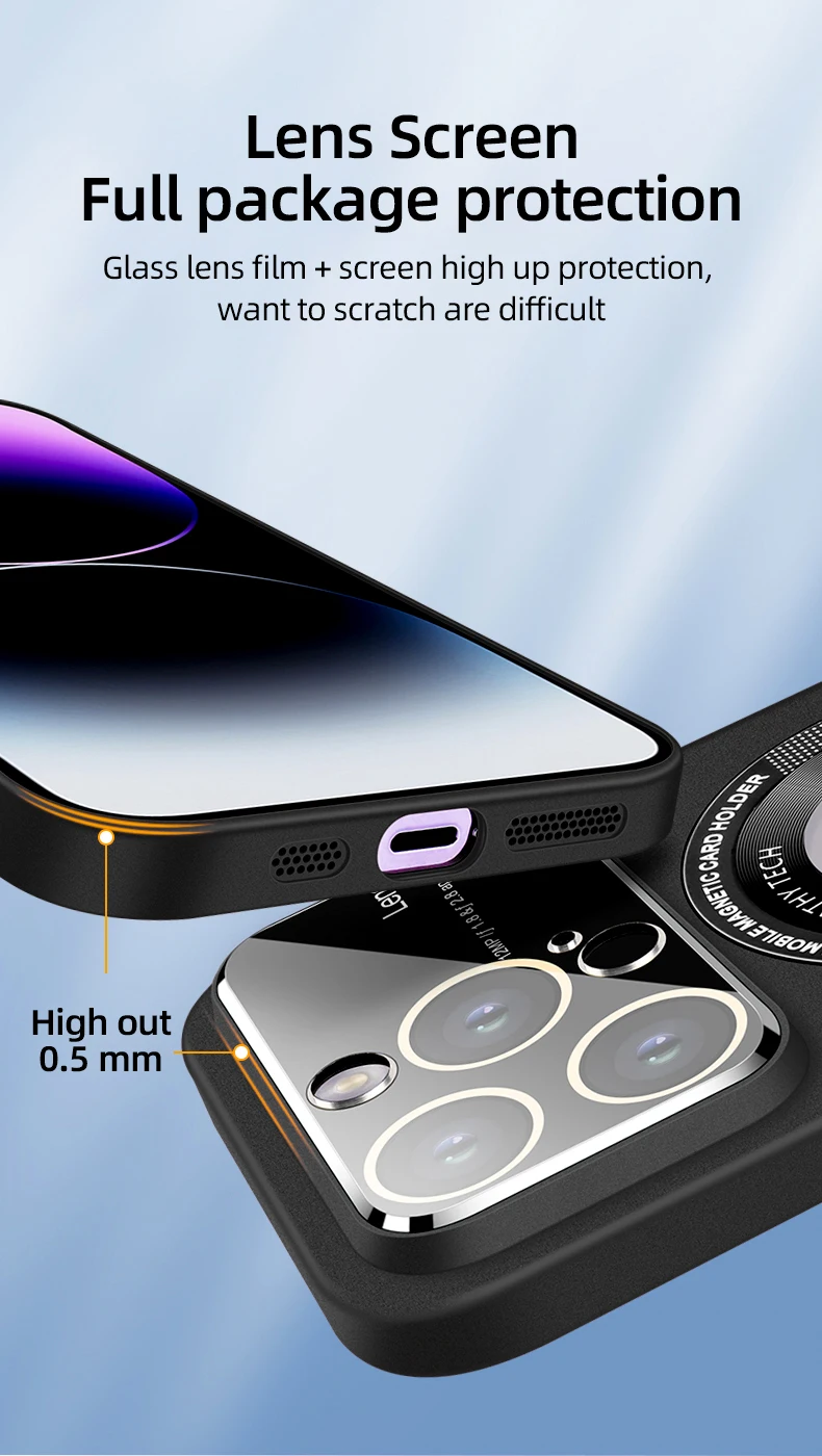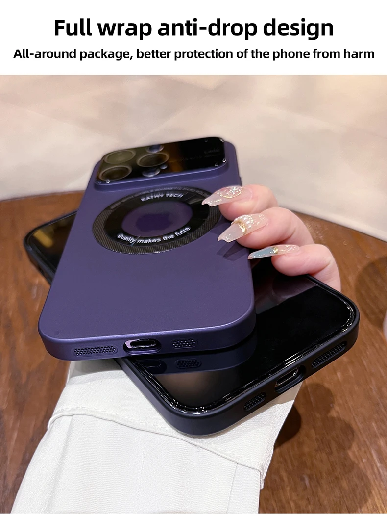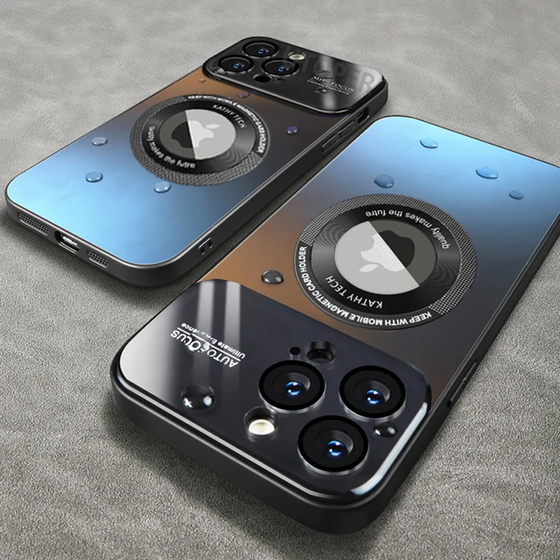 Comprar Funda Magsafe mate delgada de lujo para IPhone 14 Pro Max 13 12 Pro Max Plus, lente de vidrio que protege la carga inalámbrica, cubierta magnética