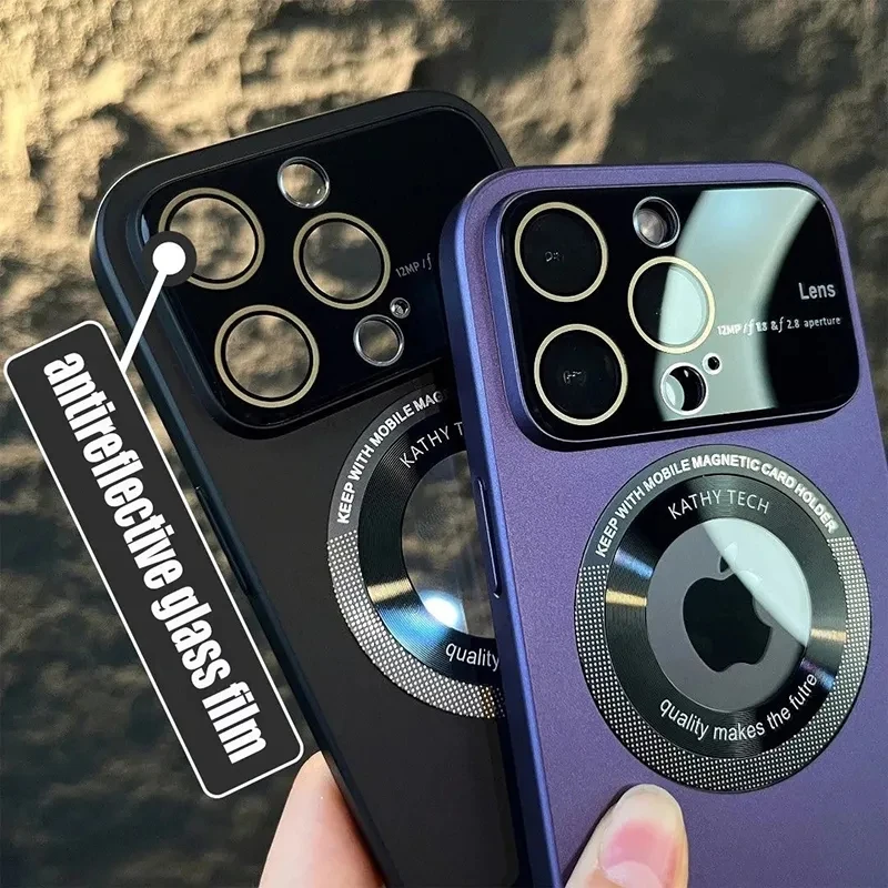 Nueva funda protectora de lente de cristal mate delgada de lujo para IPhone 14 Pro Max 13 12 Pro Max Plus Magsafe cubierta magnética de carga inalámbrica