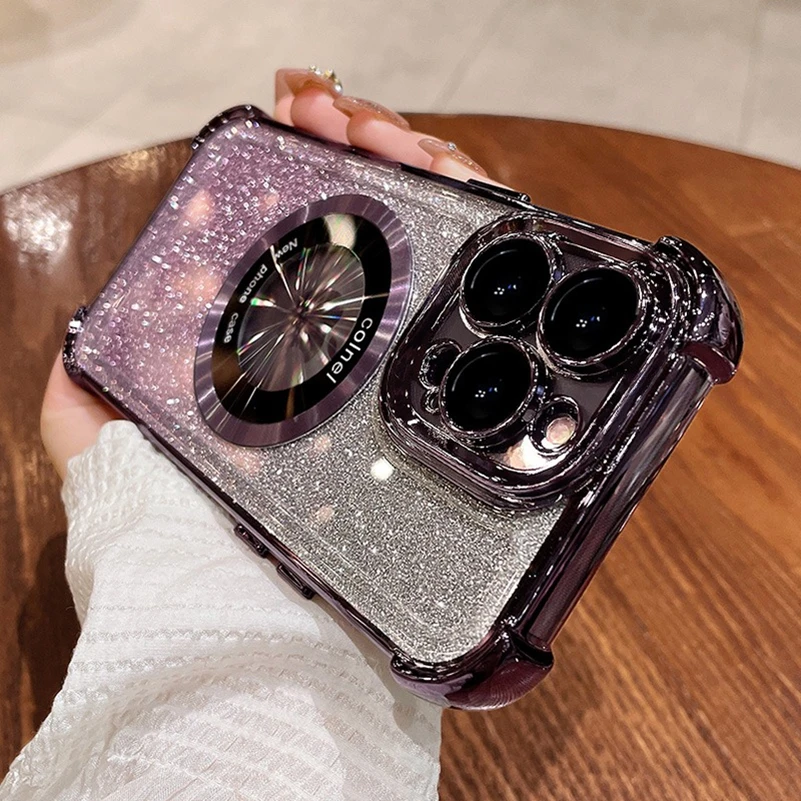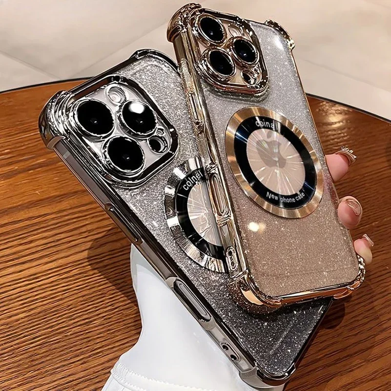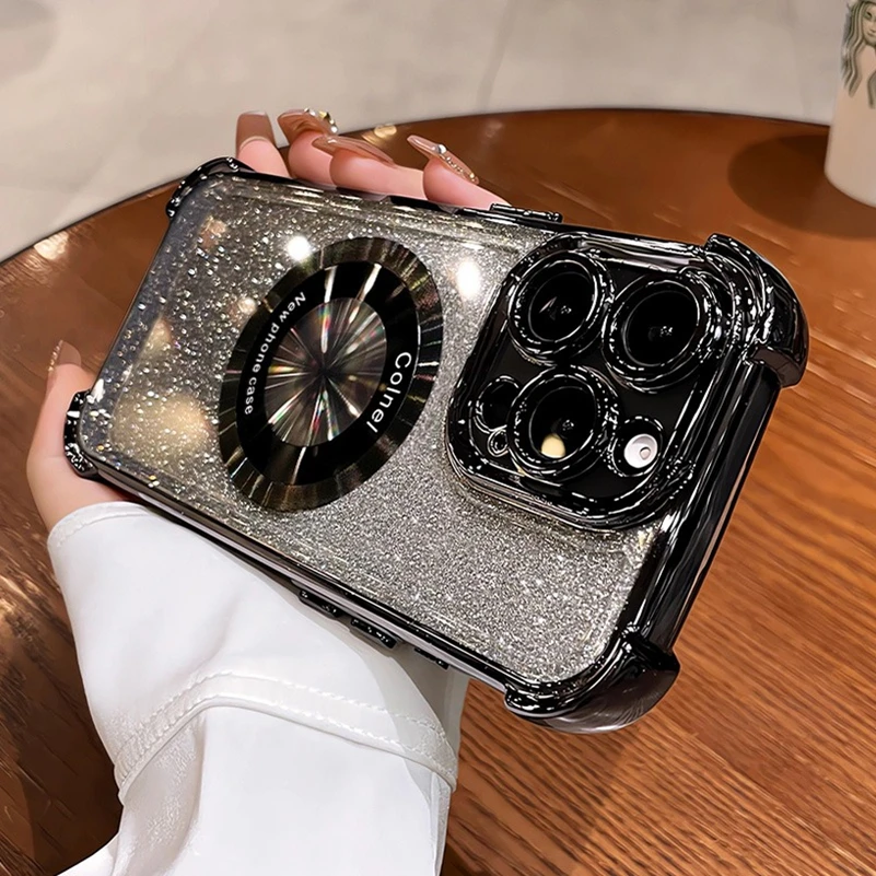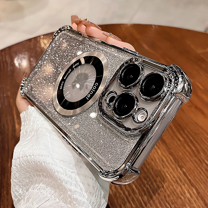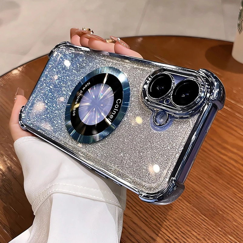 Comprar Funda Magsafe con purpurina para iPhone 15 16 Pro Max Plus, Airbag, imán a prueba de golpes, funda de lujo para iPhone 11 12 13 14 Pro Max
