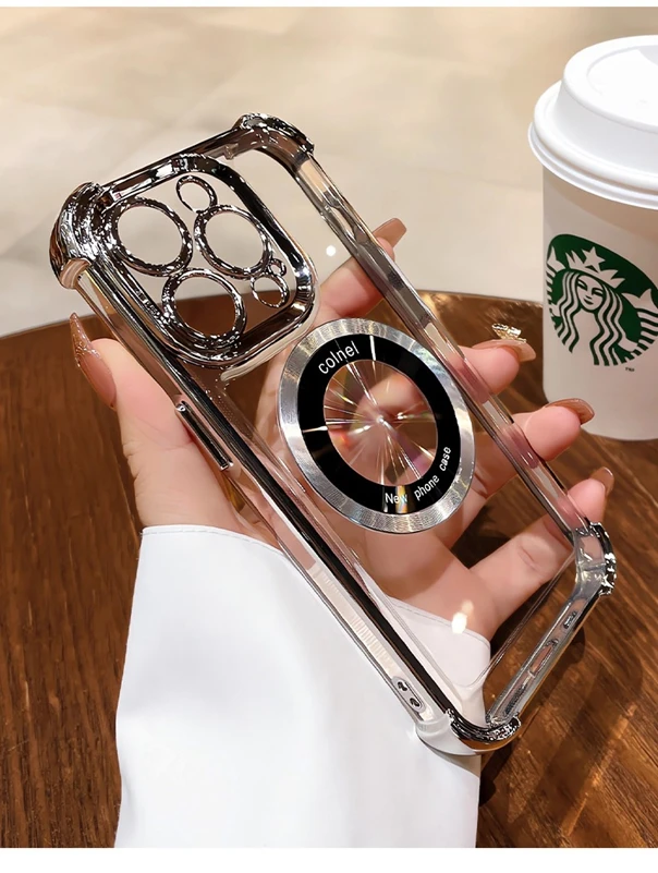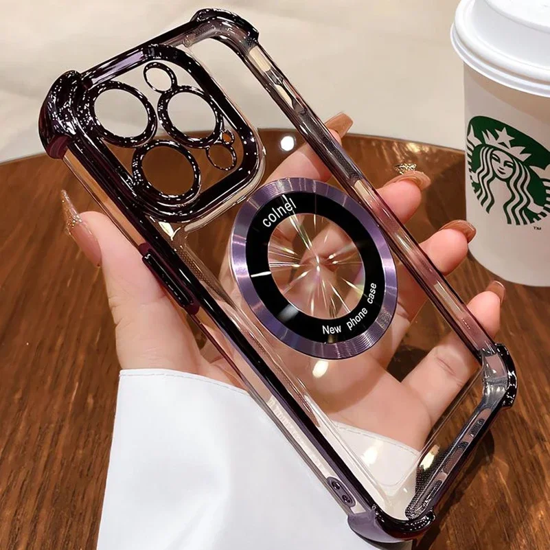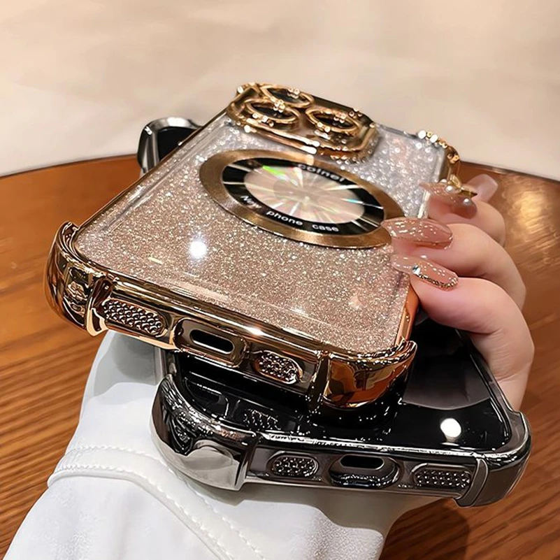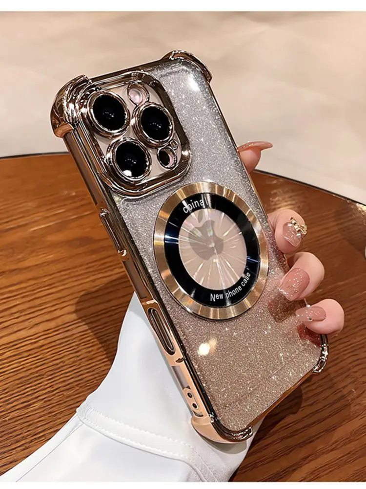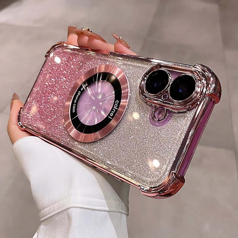 Comprar Funda Magsafe con purpurina para iPhone 15 16 Pro Max Plus, Airbag, imán a prueba de golpes, funda de lujo para iPhone 11 12 13 14 Pro Max