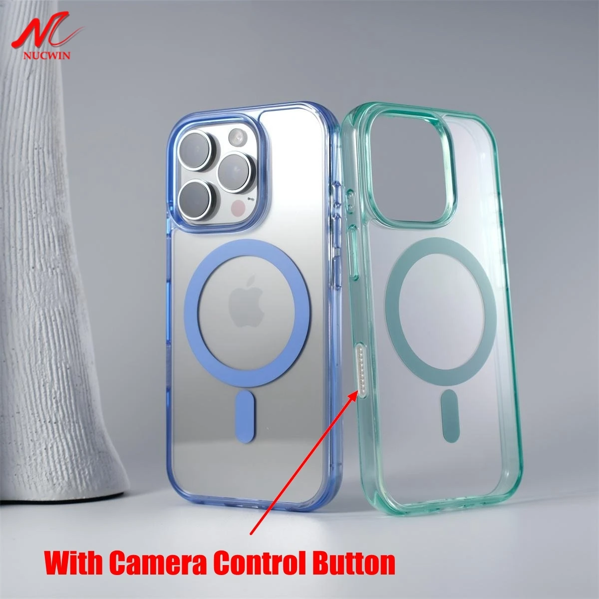 Comprar Funda Magsafe semitransparente para iPhone 16 Pro Max 16 Plus, botón de Control de captura de cámara Smart Island, cubierta magnética acrílica