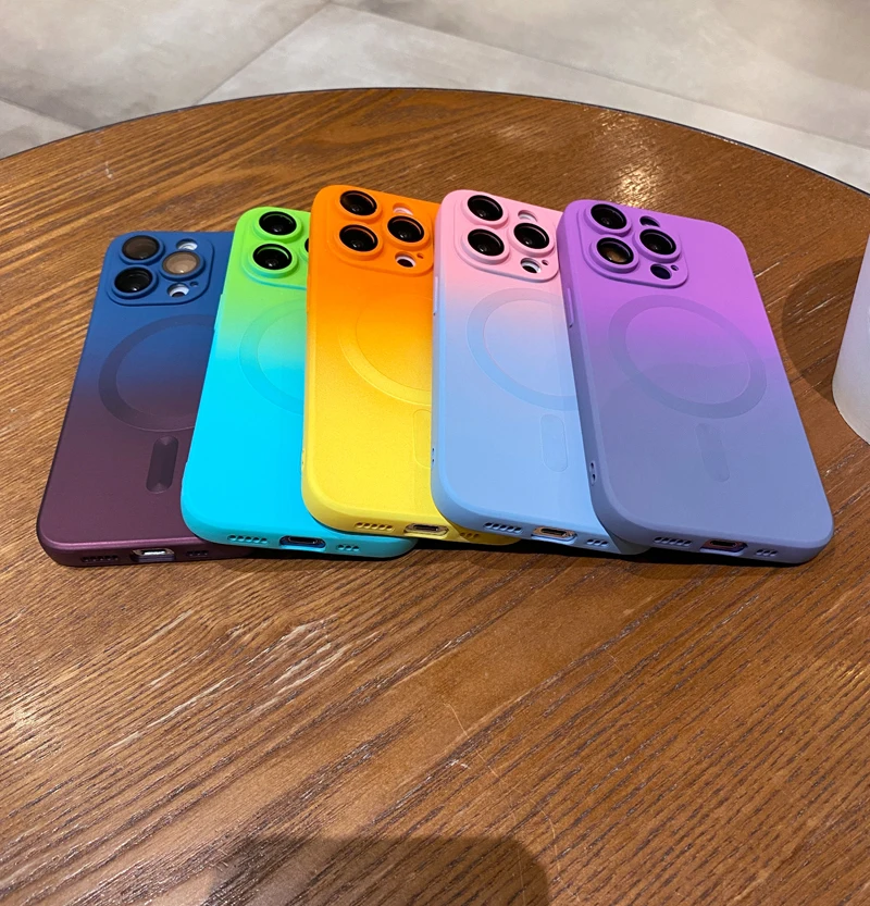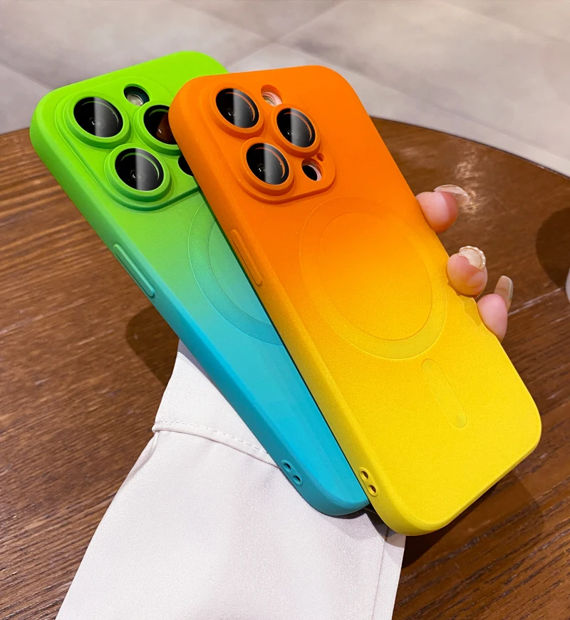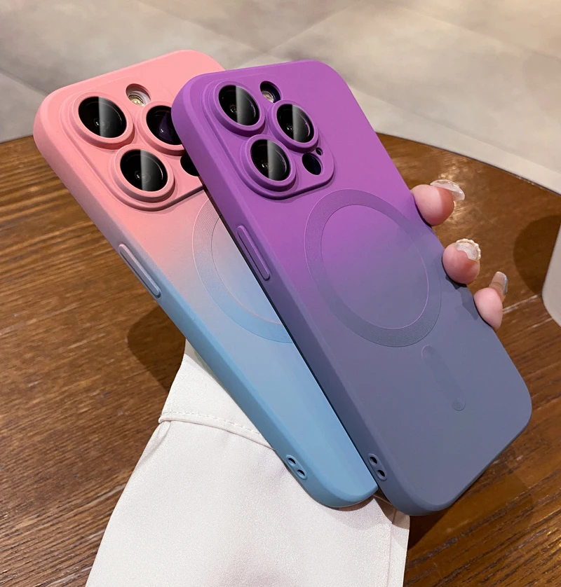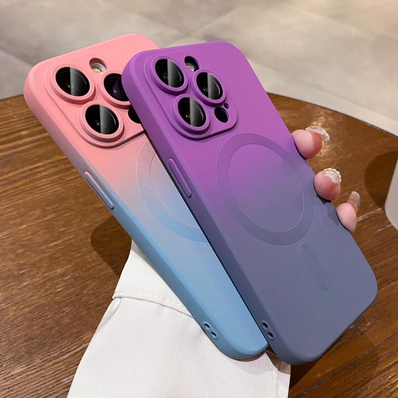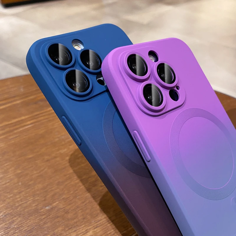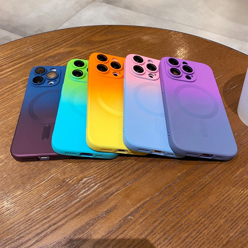 Comprar Funda Magsafe de silicona degradada de lujo para iPhone 15, 14, 13, 12, 11 Pro Max Mag, segura, inalámbrica, suave, con cubiertas de lente de cristal para cámara