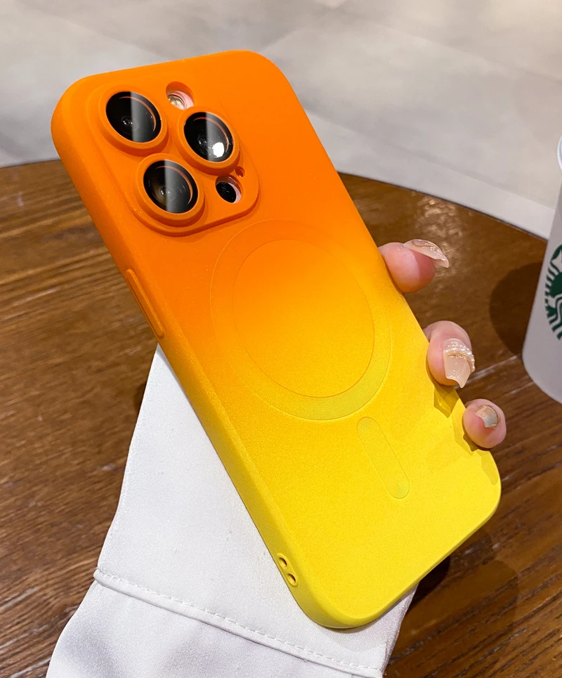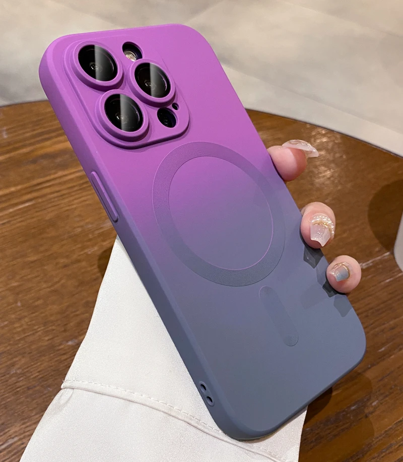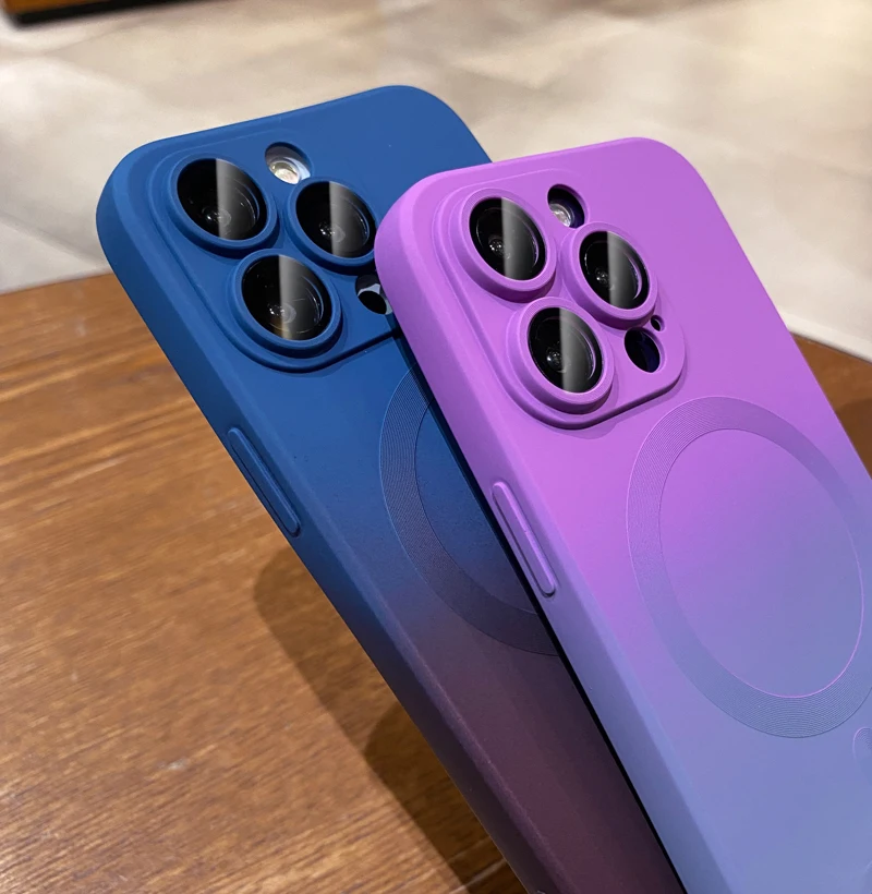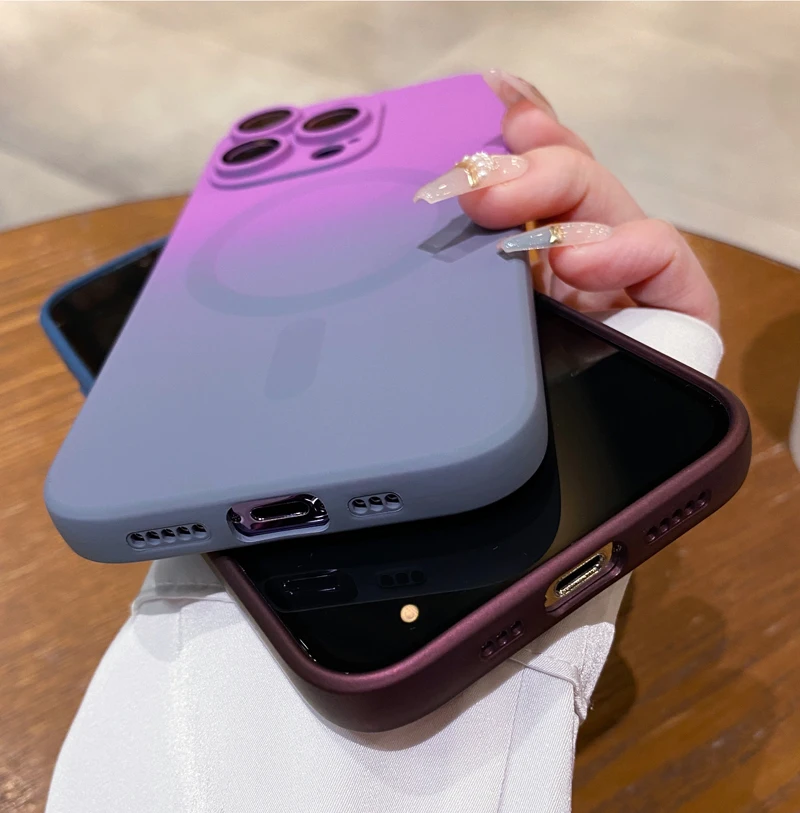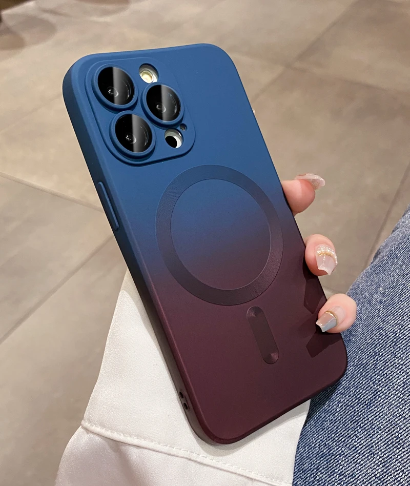 Comprar Funda Magsafe de silicona degradada de lujo para iPhone 15, 14, 13, 12, 11 Pro Max Mag, segura, inalámbrica, suave, con cubiertas de lente de cristal para cámara