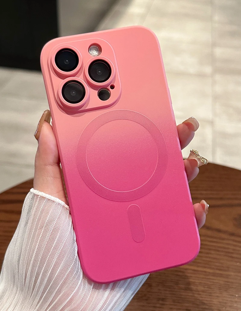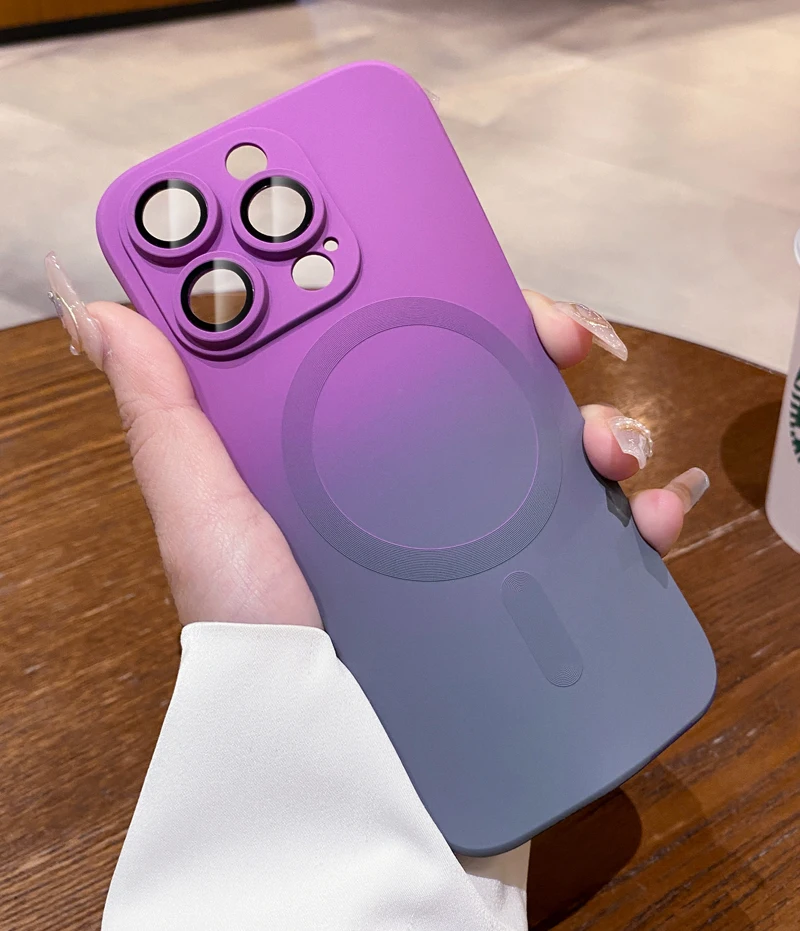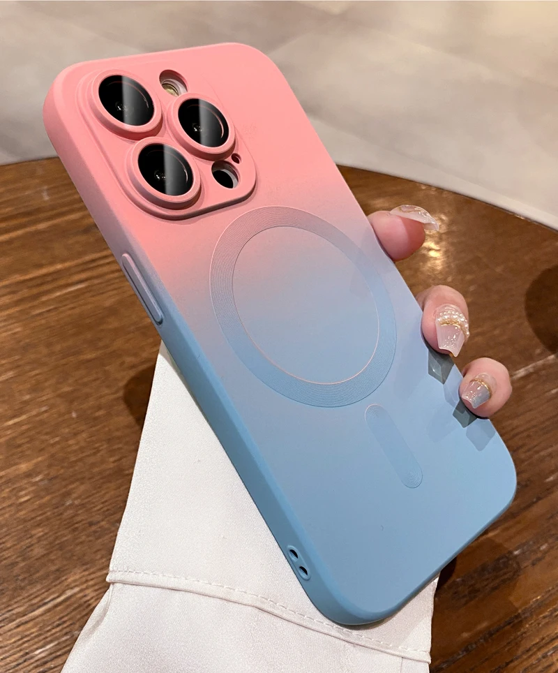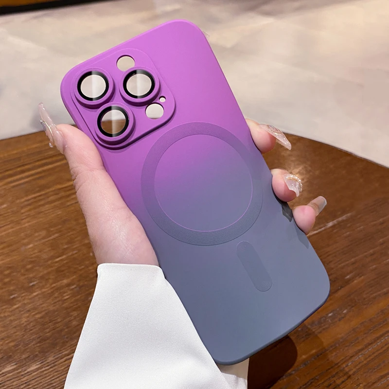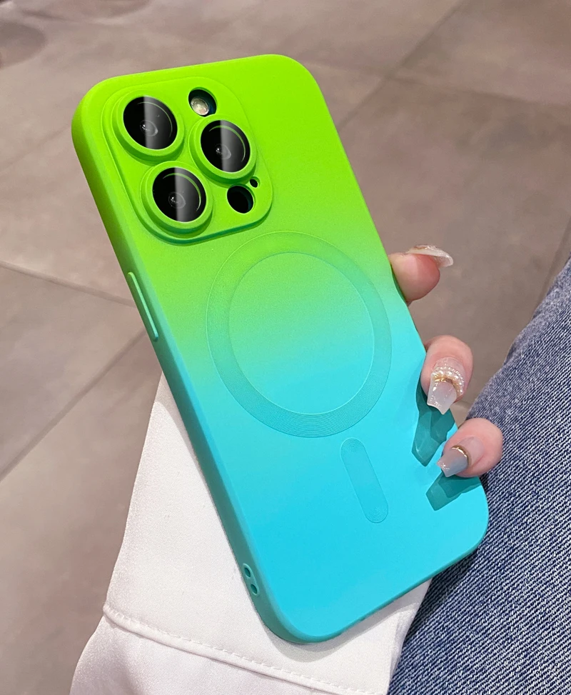 Funda Magsafe de silicona degradada de lujo para iPhone 15, 14, 13, 12, 11 Pro Max Mag, segura, inalámbrica, suave, con cubiertas de lente de cristal para cámara