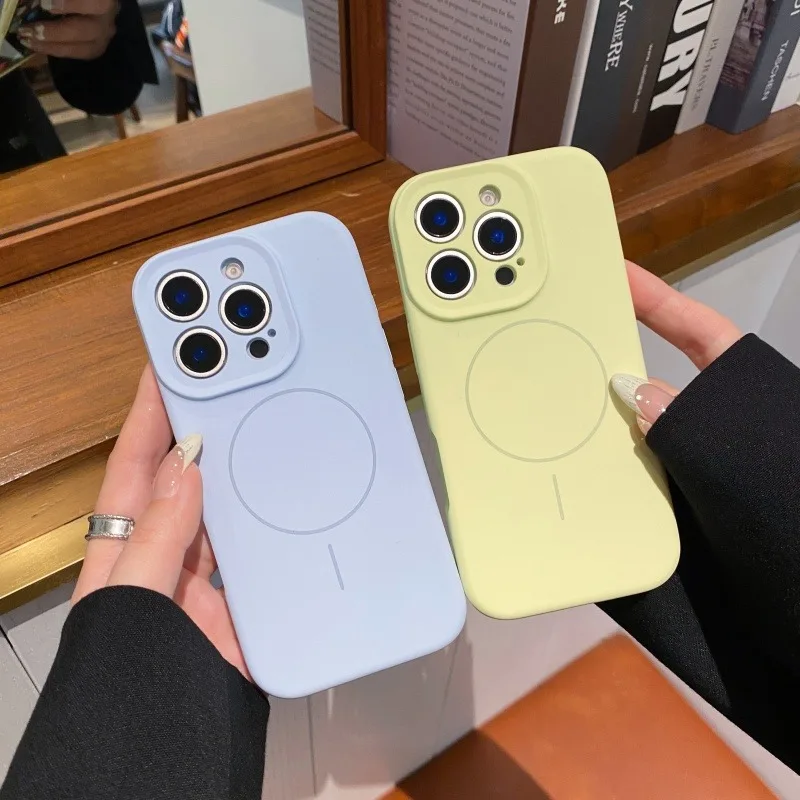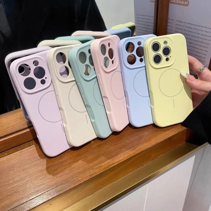 Comprar Funda Magsafe de silicona líquida de lujo para iPhone 13, 14, 15 16 Pro Max, cubierta protectora de lente con botón de Control de cámara sensible