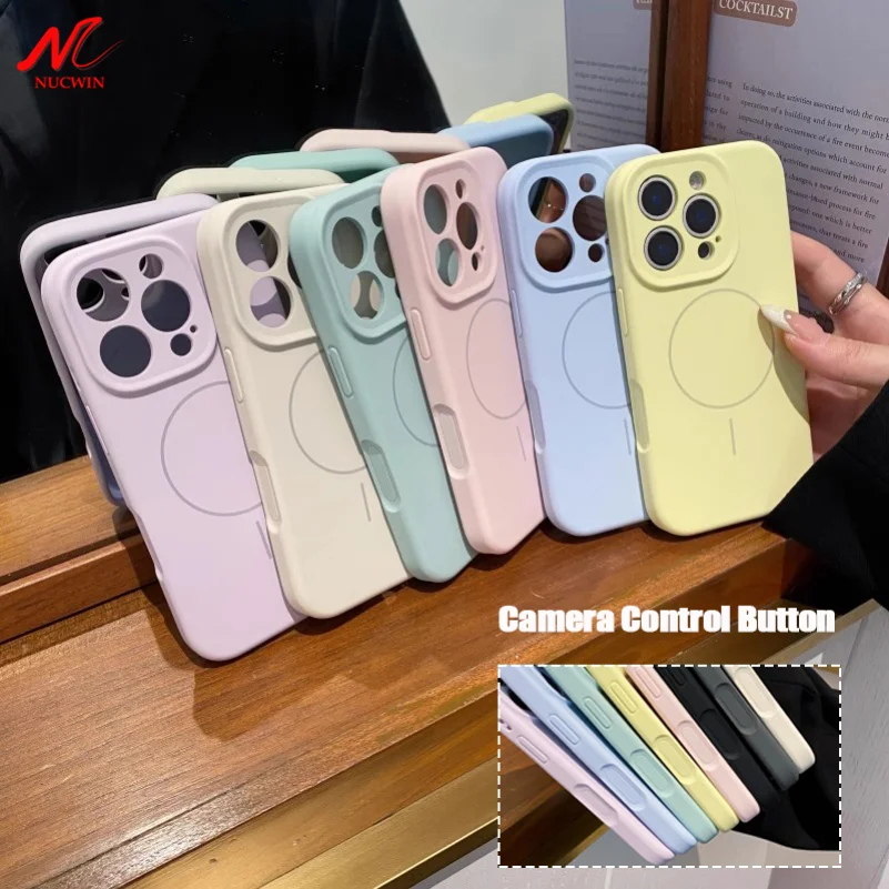 Comprar Funda Magsafe de silicona líquida de lujo para iPhone 13, 14, 15 16 Pro Max, cubierta protectora de lente con botón de Control de cámara sensible