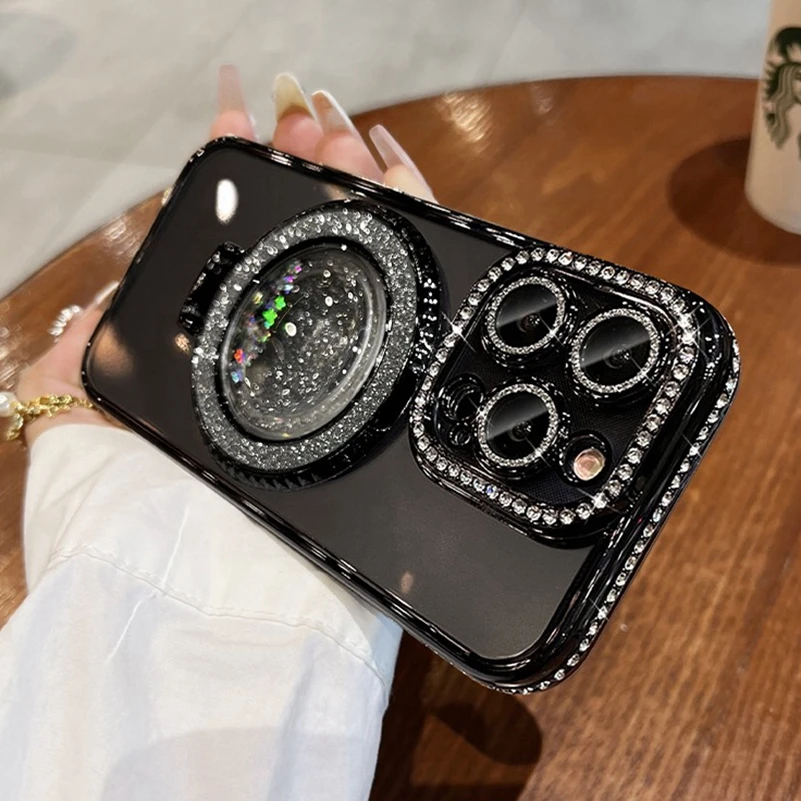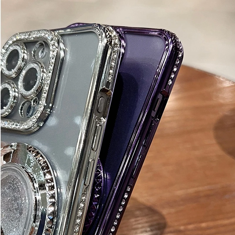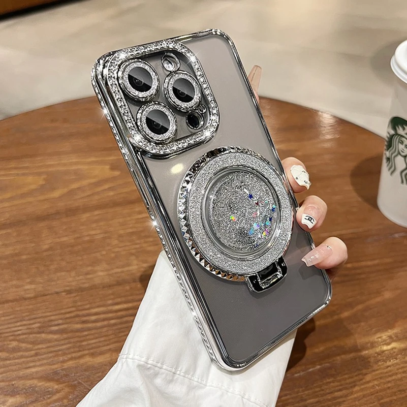 Comprar Funda Magsafe con soporte de arena movediza con purpurina de lujo para iPhone 11, 12, 13, 14, 15, 16 Pro Max, 16 Plus, cubierta de silicona chapada transparente