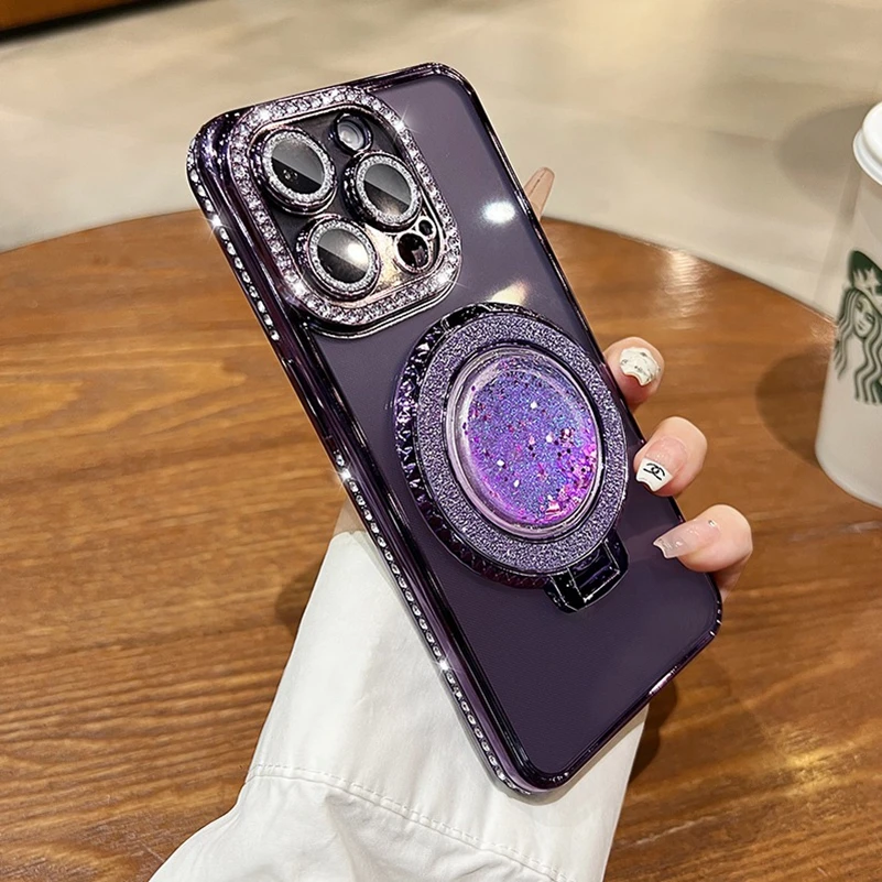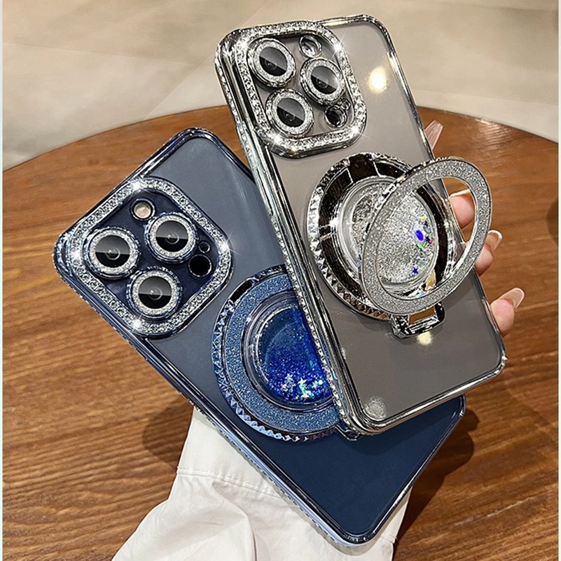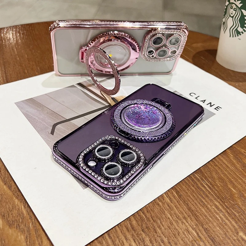 Soporte de arena movediza brillante para funda de soporte Magsafe para iPhone 16 15 14 13 11 12 Pro Max Ring Holder Gradient Cover