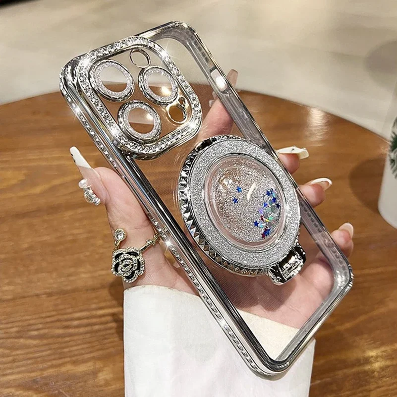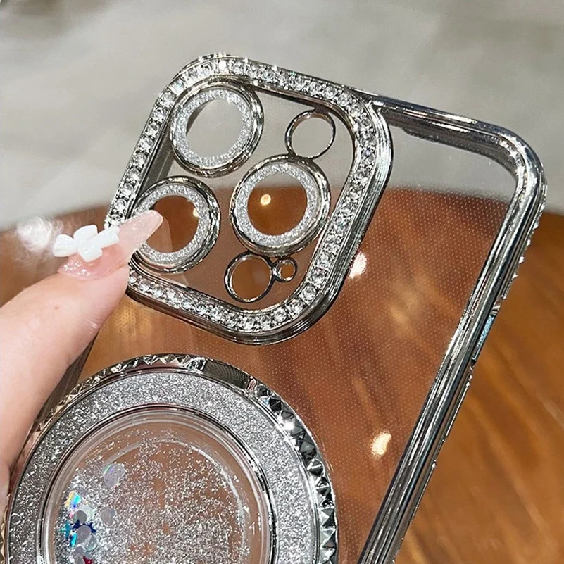 Comprar Funda Magsafe con soporte de arena movediza con purpurina de lujo para iPhone 11, 12, 13, 14, 15, 16 Pro Max, 16 Plus, cubierta de silicona chapada transparente