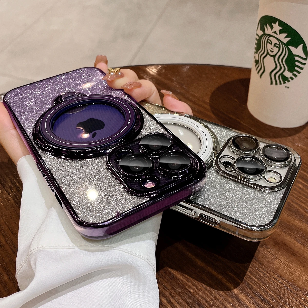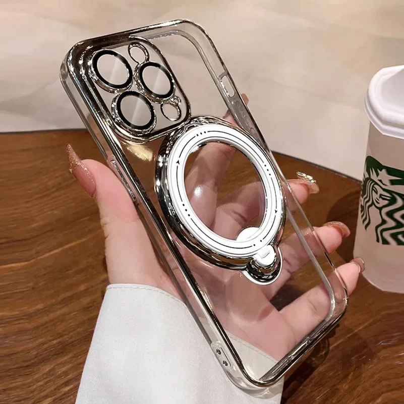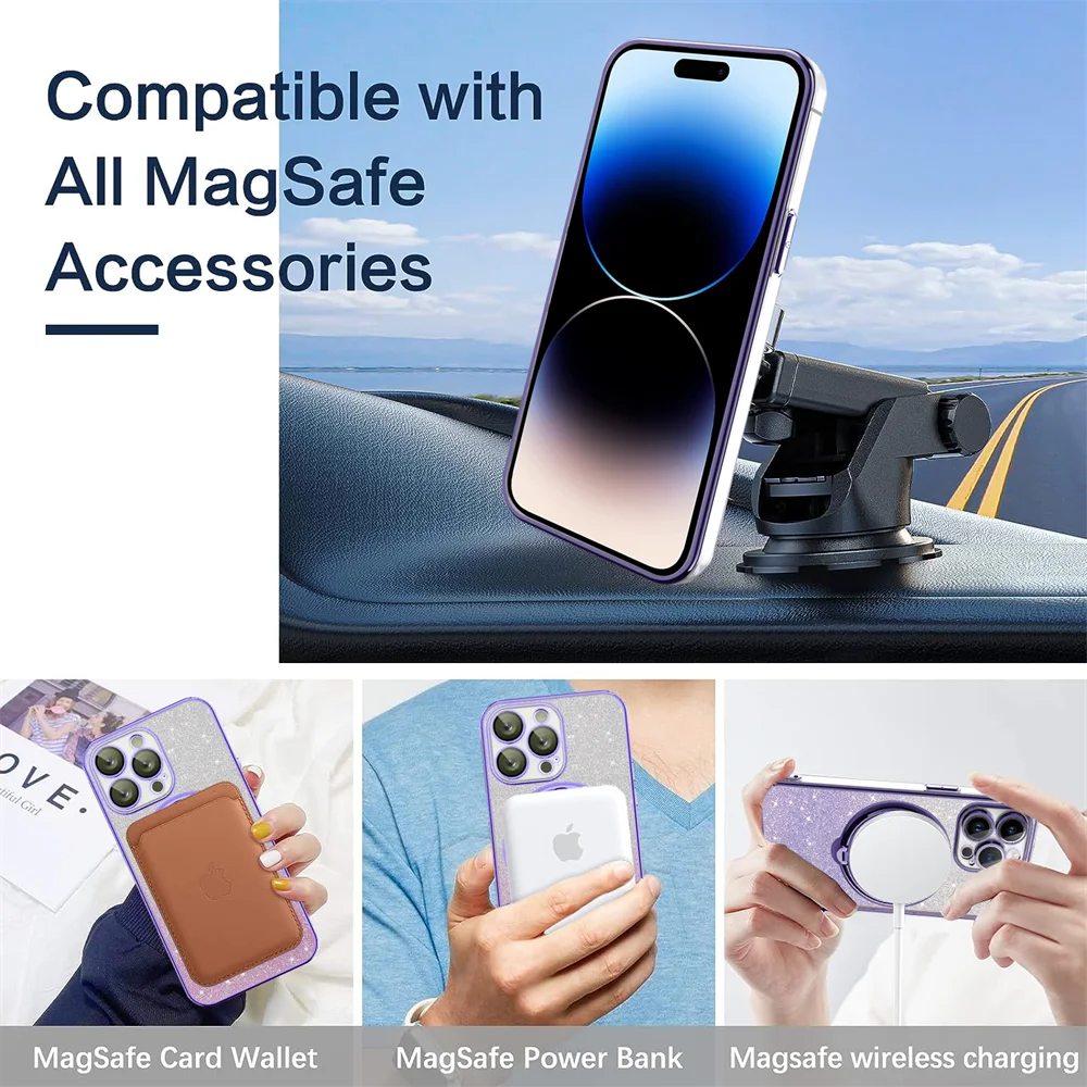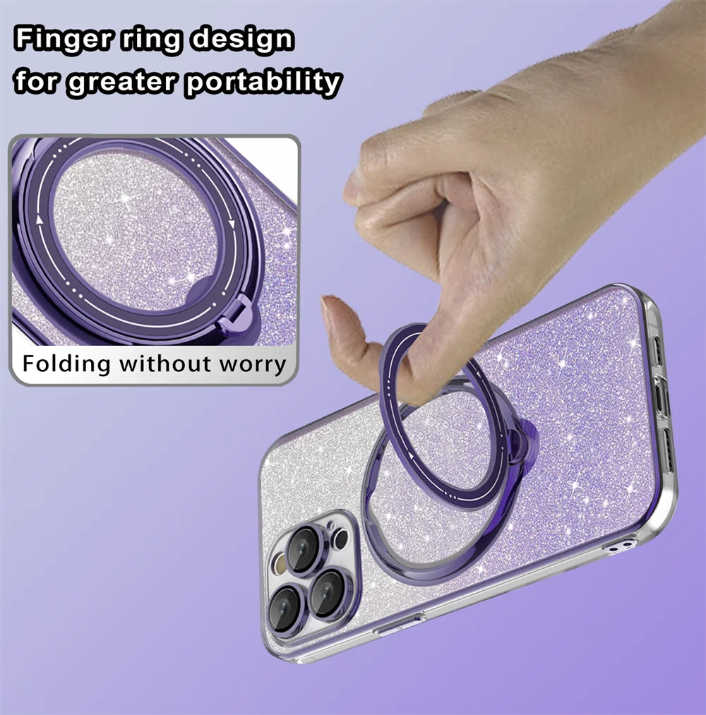 Comprar Funda Magsafe con soporte Chapado en purpurina de lujo para iPhone 16, 15, 14, 13, 12, 11 Pro Max, 14, 15, 16 Plus, imán brillante para niña, nueva cubierta