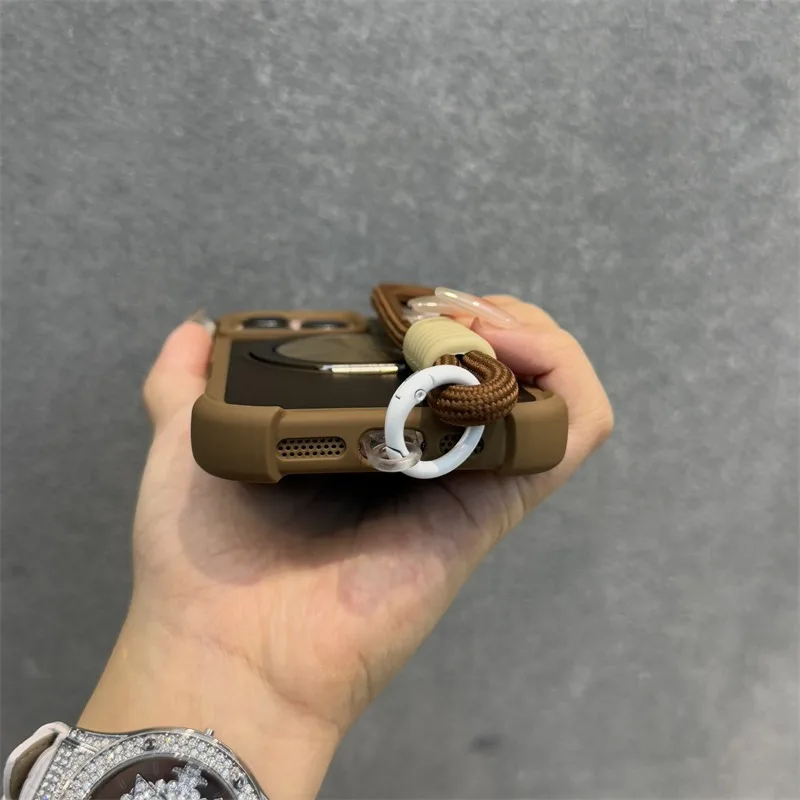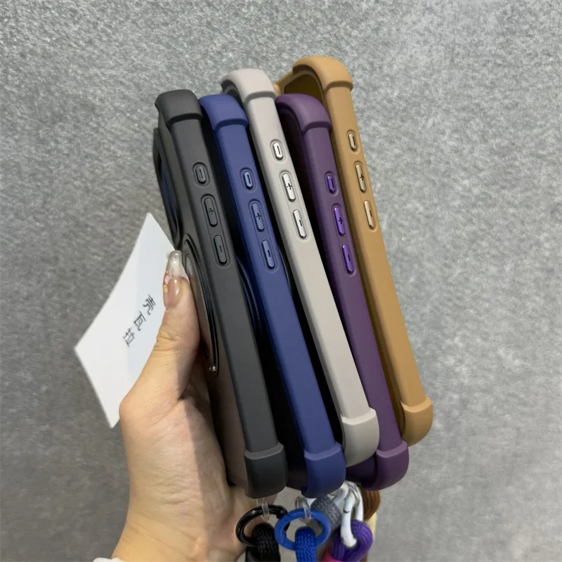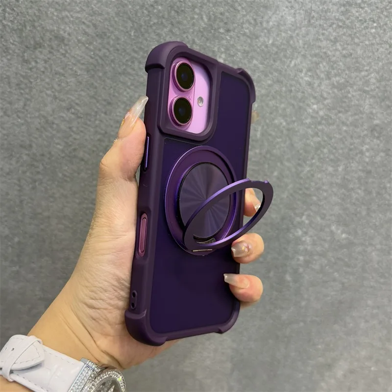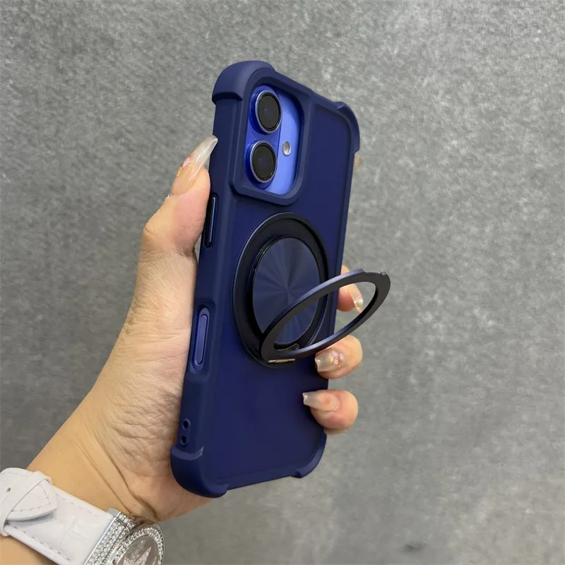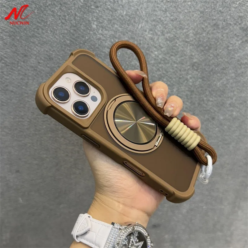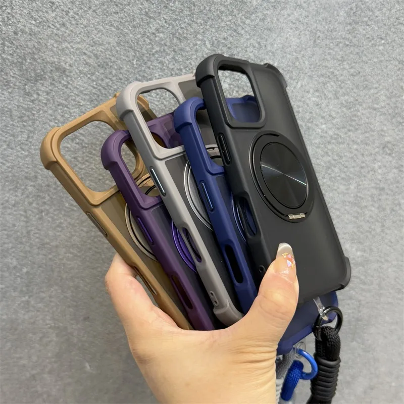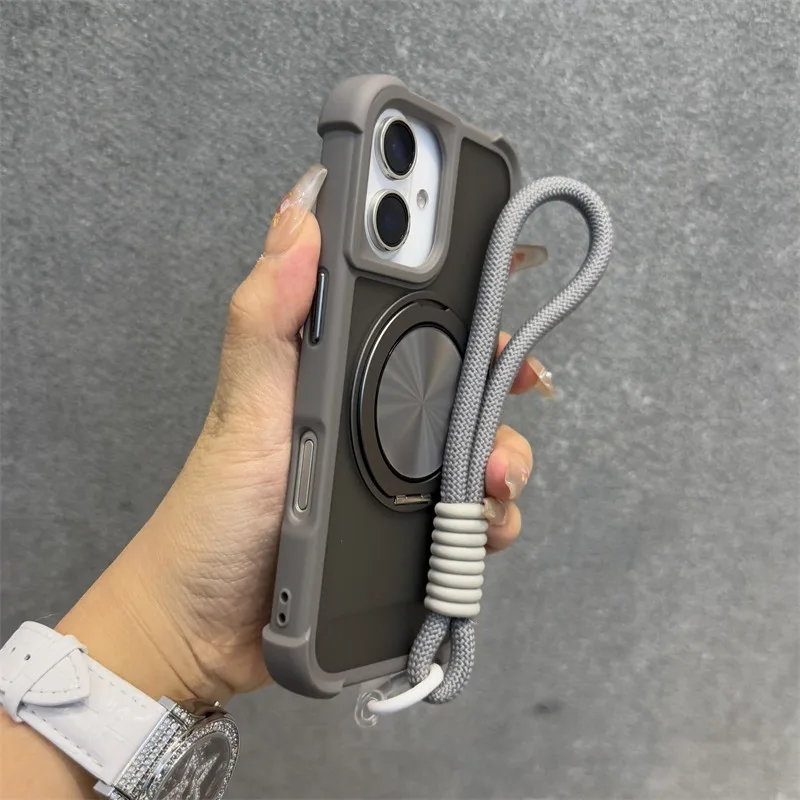 Comprar Funda Magsafe con soporte giratorio 360 para iPhone 13 12 14 15 16 Pro Max 14 15 16 Plus Airbag cubierta antigolpes con correa para la muñeca