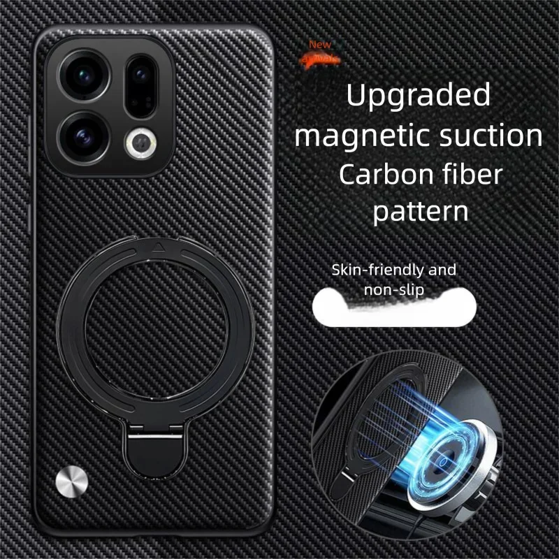 Funda Magsafe con soporte giratorio magnético para OPPO Find X9 Pro X8 X8S X7 Ultra X6, funda mate de cuero PU de fibra de carbono a prueba de golpes