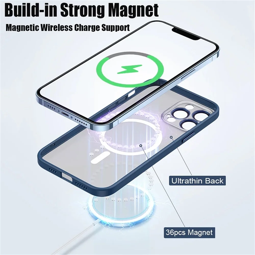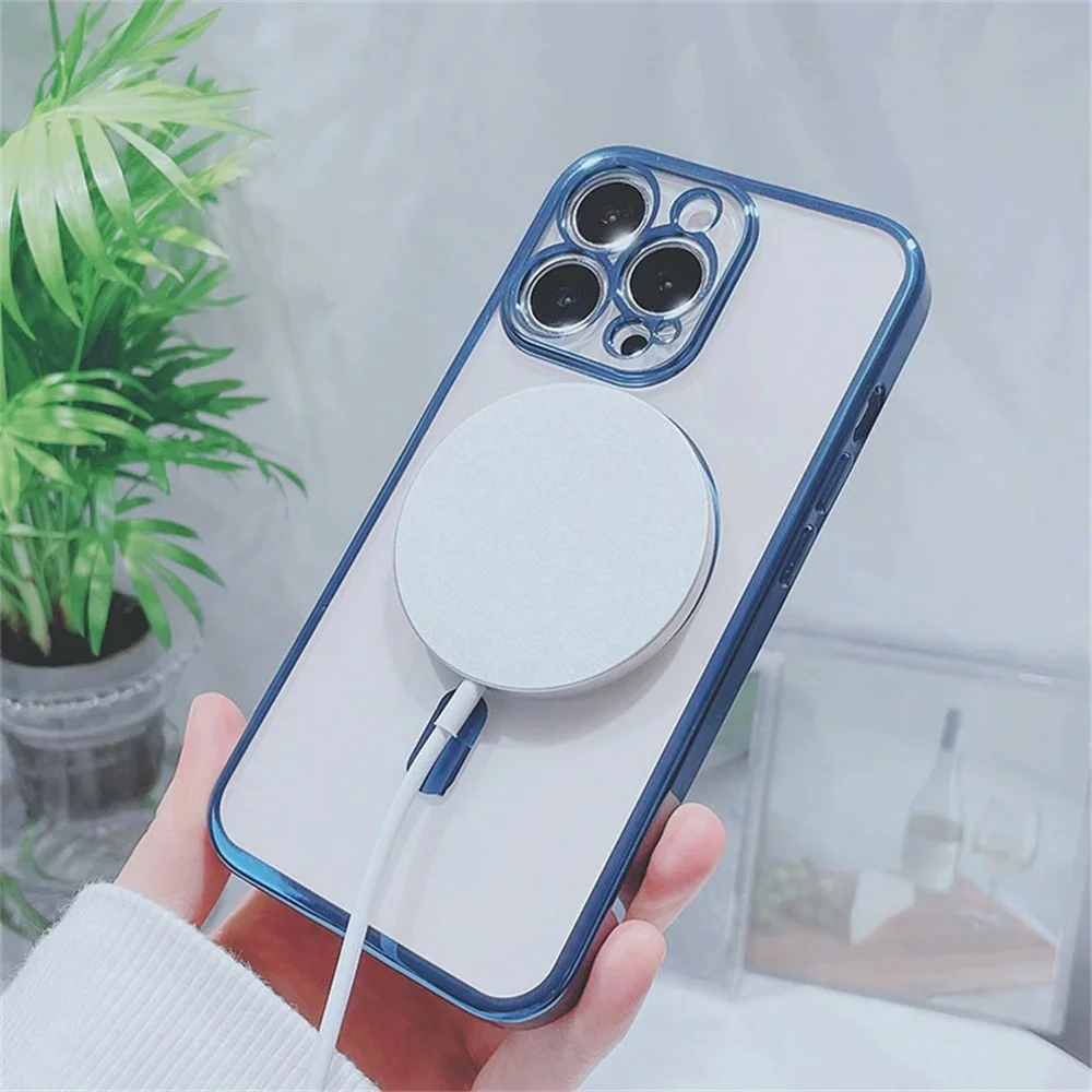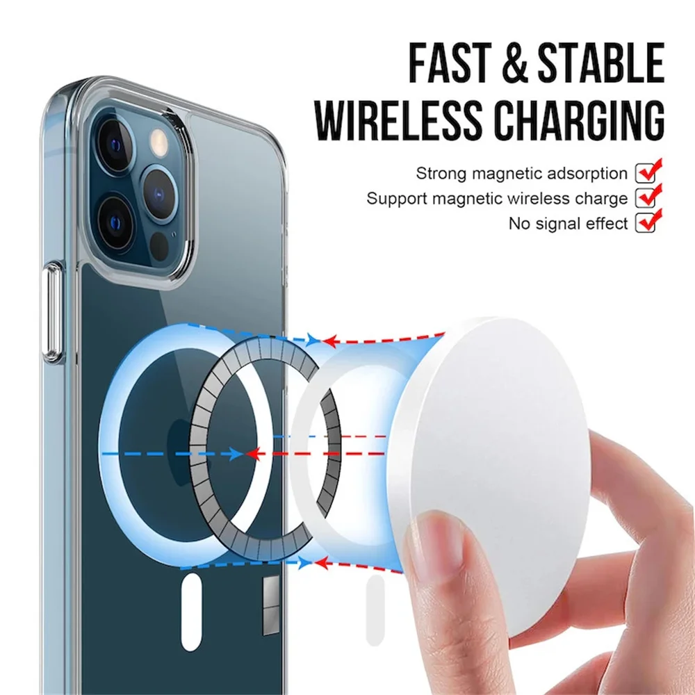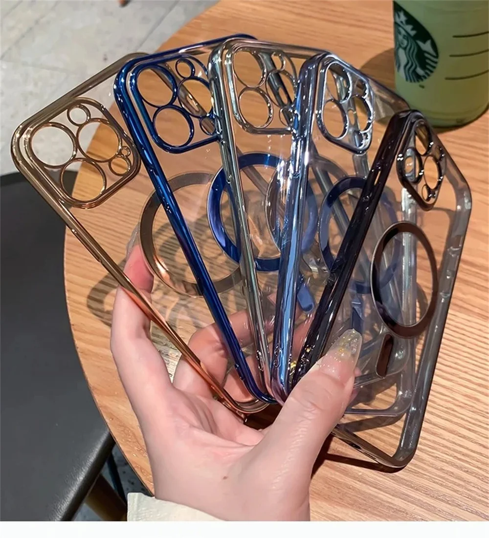 Comprar Funda Magsafe transparente de carga inalámbrica de lujo para iPhone 14 13 12 11 Pro Max X XR XS 7 8 Plus SE 2020 22 Mini cubierta suave