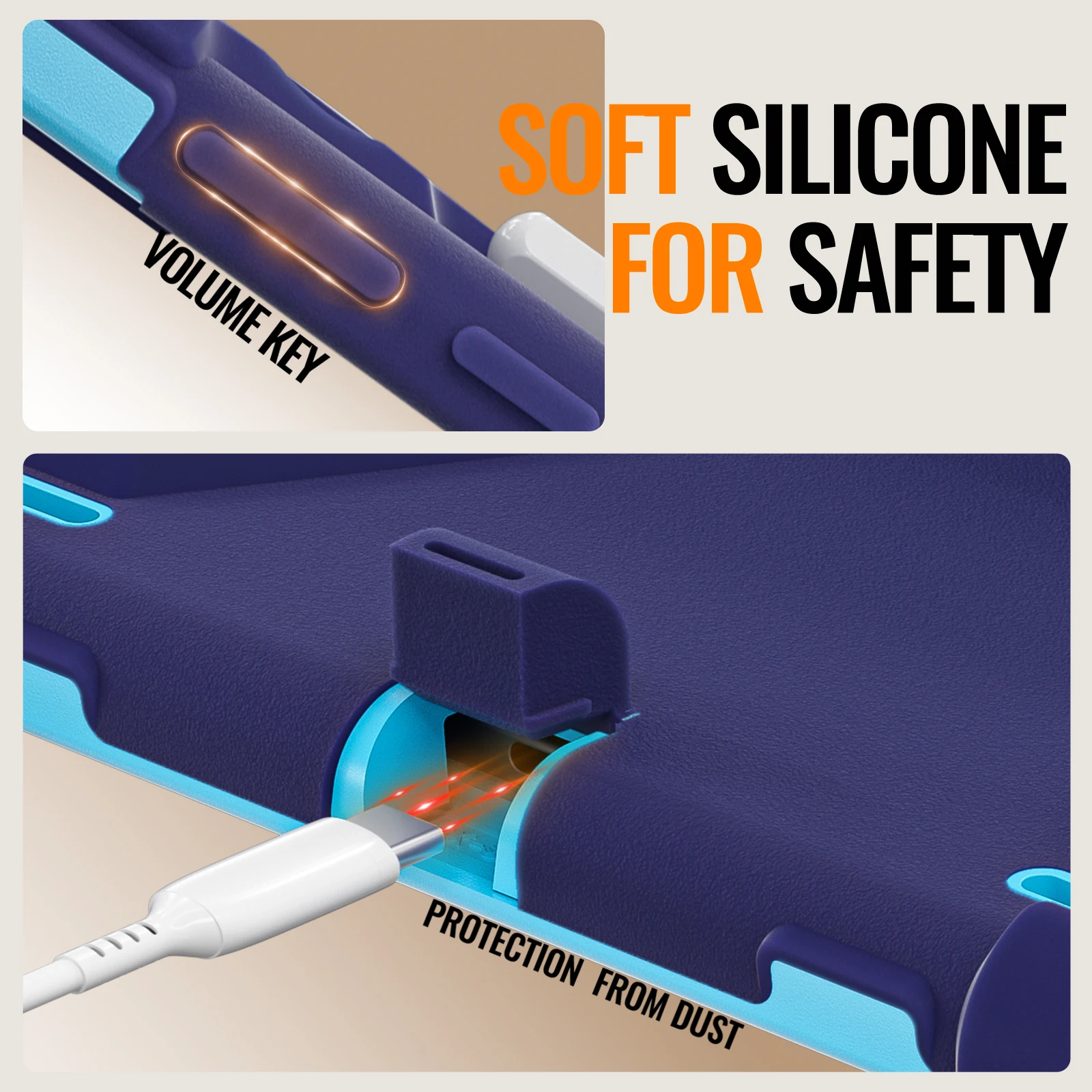 3), Estuche blindado: diseño 3 en 1, interior de PC resistente y cubierta frontal, que protege su tableta contra caídas, daños e impactos.La carcasa de silicona suave proporciona funciones antideslizantes, de protección contra colisiones y colisiones.