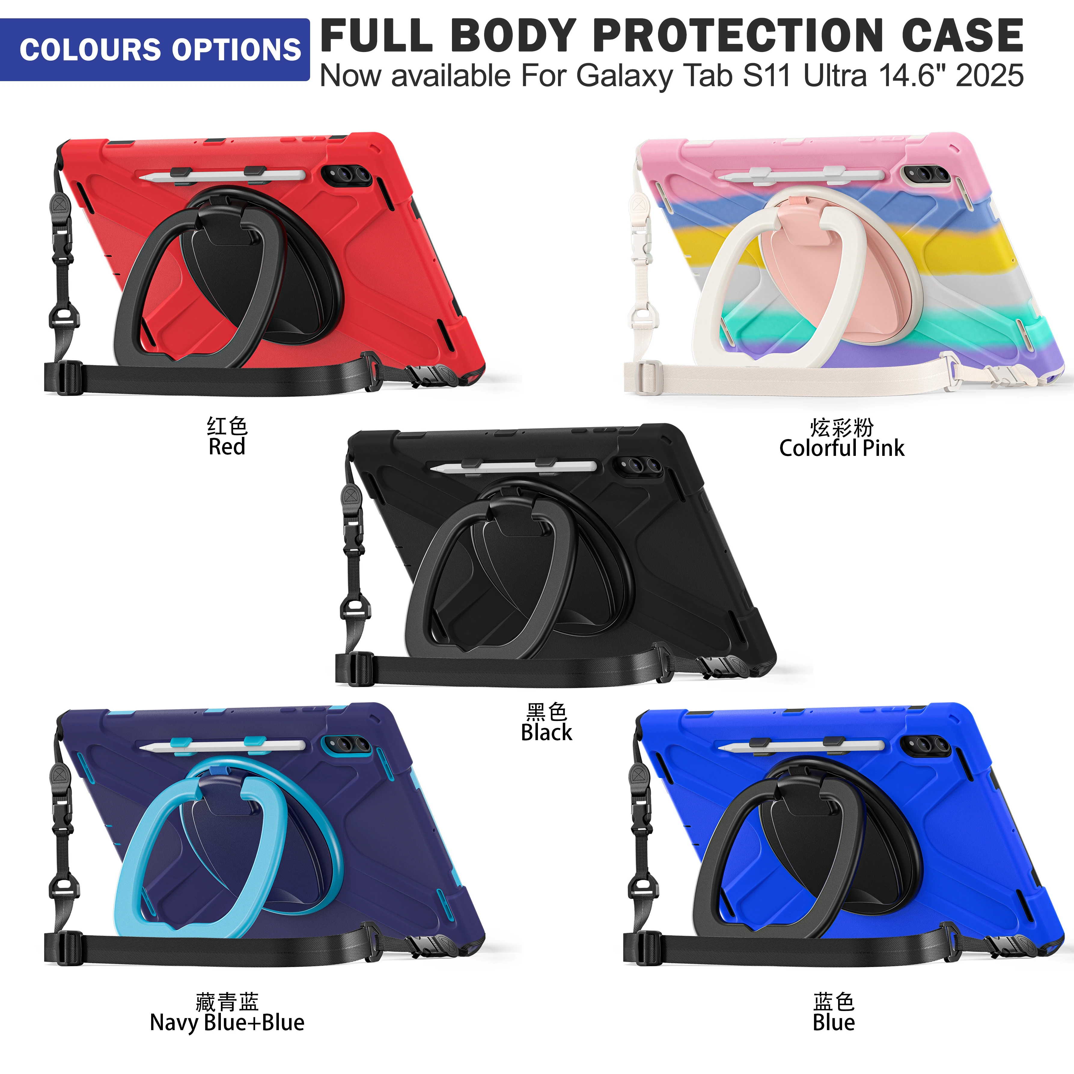 Funda con mango para Samsung Galaxy Tab S11 Ultra 2025 14,6" SM-X930 X930N X936B X936N, funda con soporte giratorio y correa para el hombro
