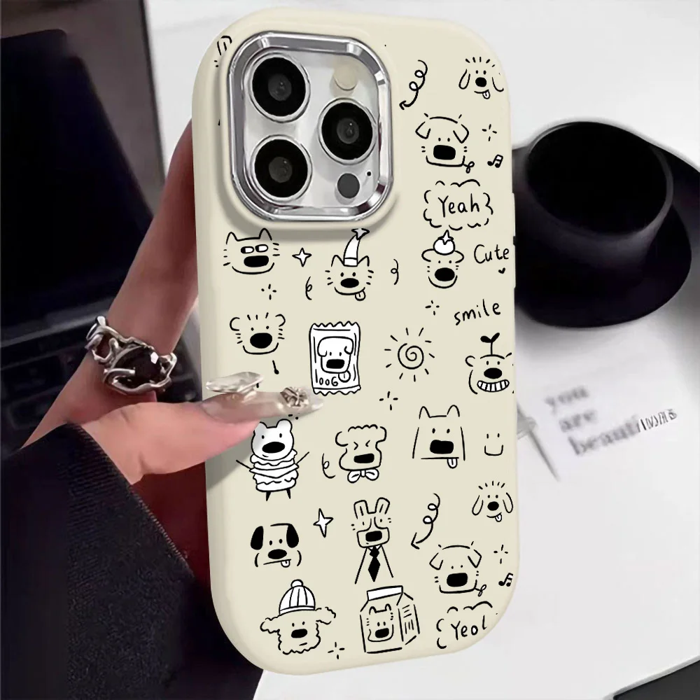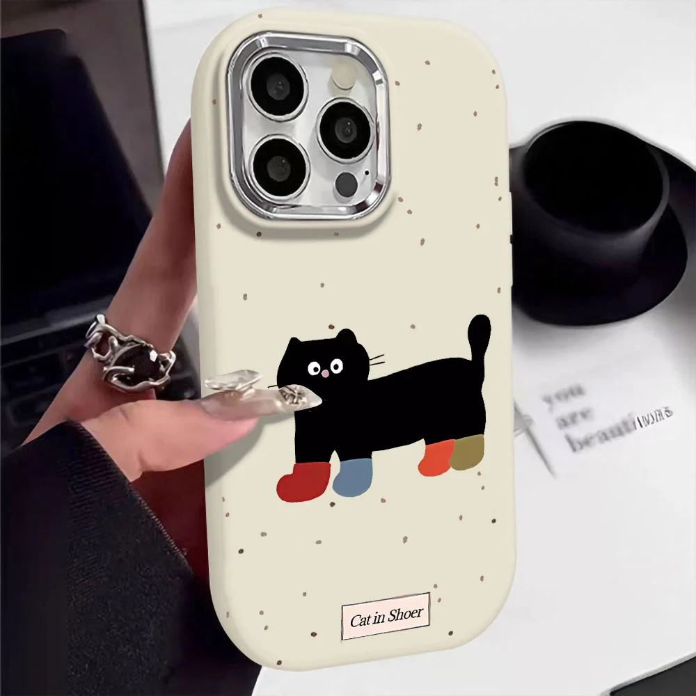 Funda con marco de lente de Metal de lujo para Samsung A55 5G A54 A53 A33 A15 A14 A13 A12 A50 A52 A34 A32 Funda de silicona suave con bonito gato y perro
