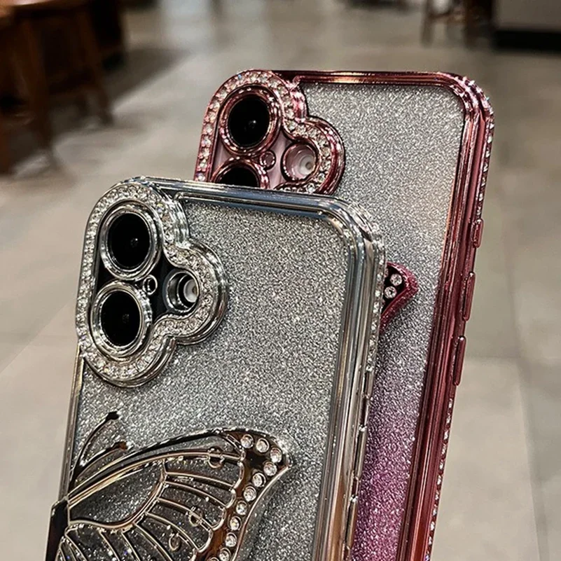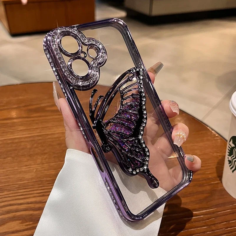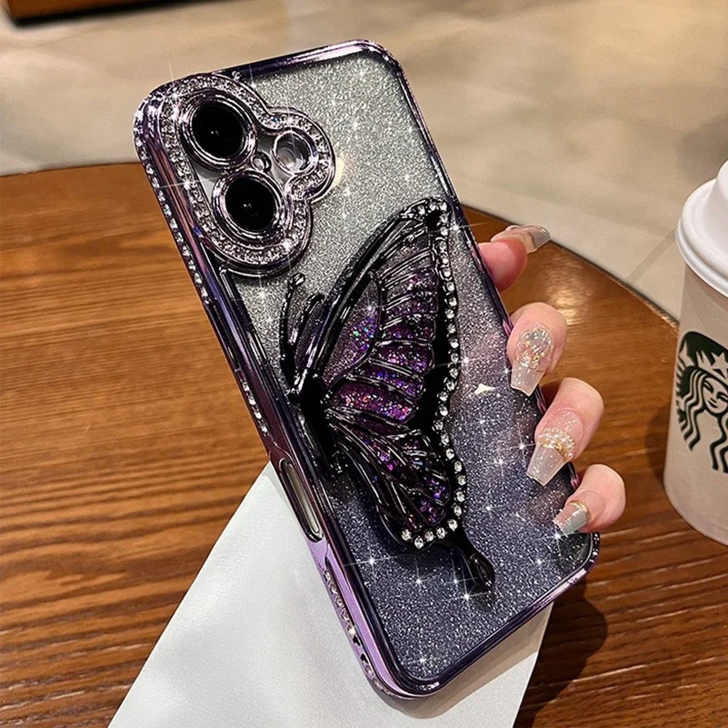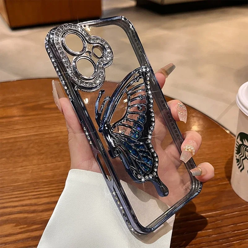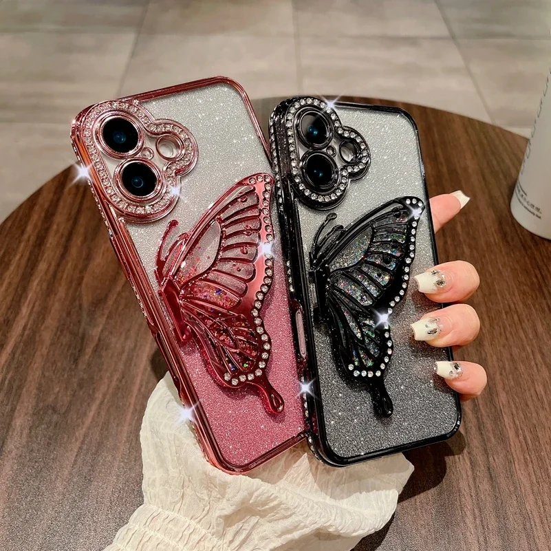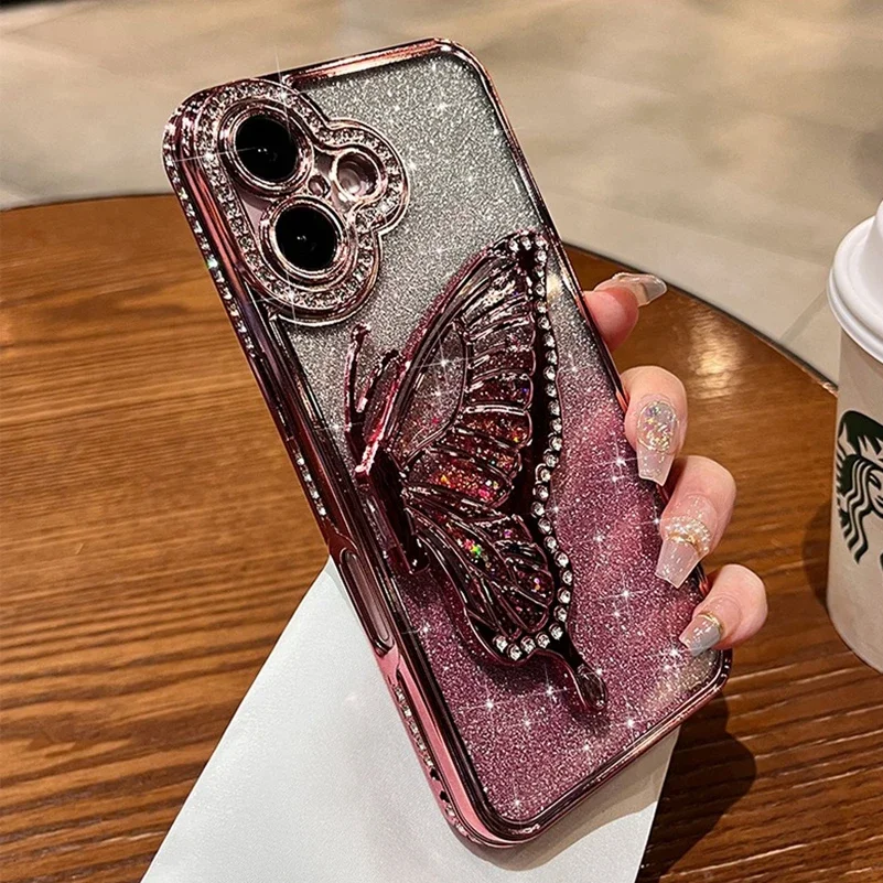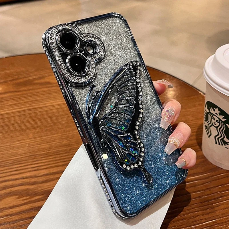 Funda de mariposa 3D de lujo para iPhone 17 Air 16 15 13 12 11 14 Pro Max Plus Bling Diamond Glitter Plating Funda trasera suave