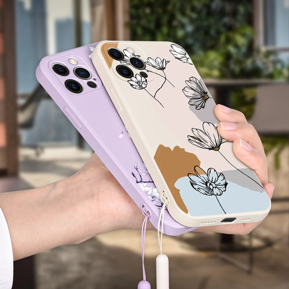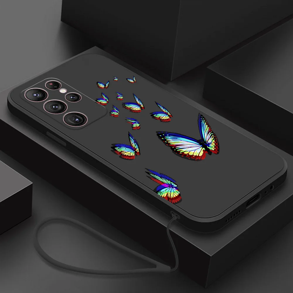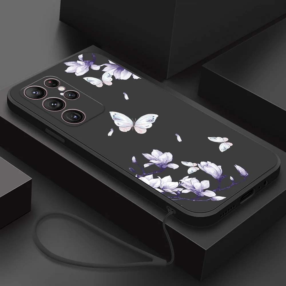 Funda de mariposa de flores para Samsung Galaxy S22 S23 Ultra S21 S20 Plus S22 S20 S10 S10e S 21 S21 fe 5G cubierta de silicona con cordón