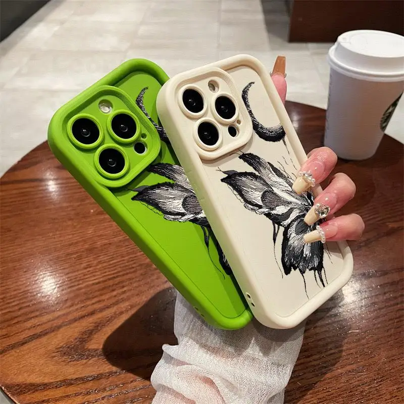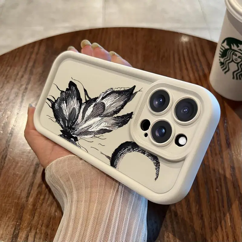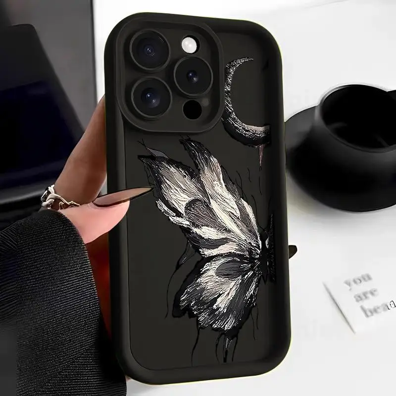 Funda de Mariposa Negra para Apple Iphone 15 14 13 12 11 Pro Max 15 Plus 15pro Max funda de teléfono de silicona de piel mate cómoda
