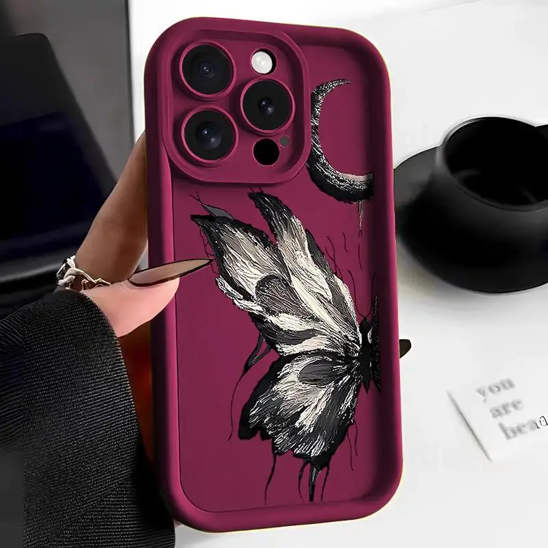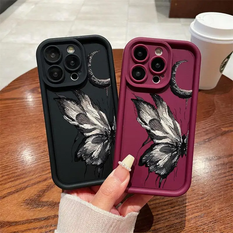Comprar Funda de Mariposa Negra para Apple Iphone 15 14 13 12 11 Pro Max 15 Plus 15pro Max, funda de teléfono de silicona de piel mate cómoda