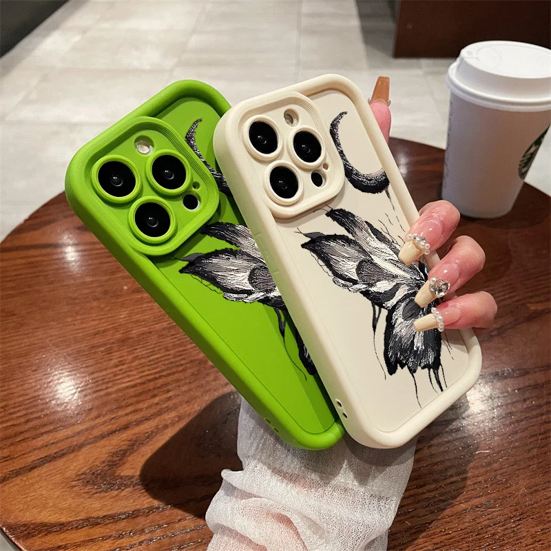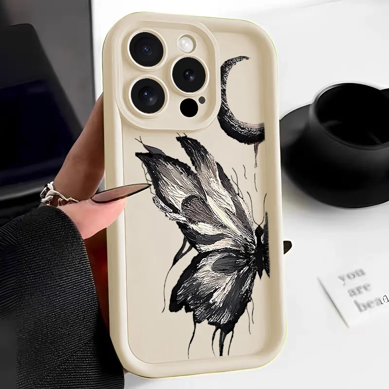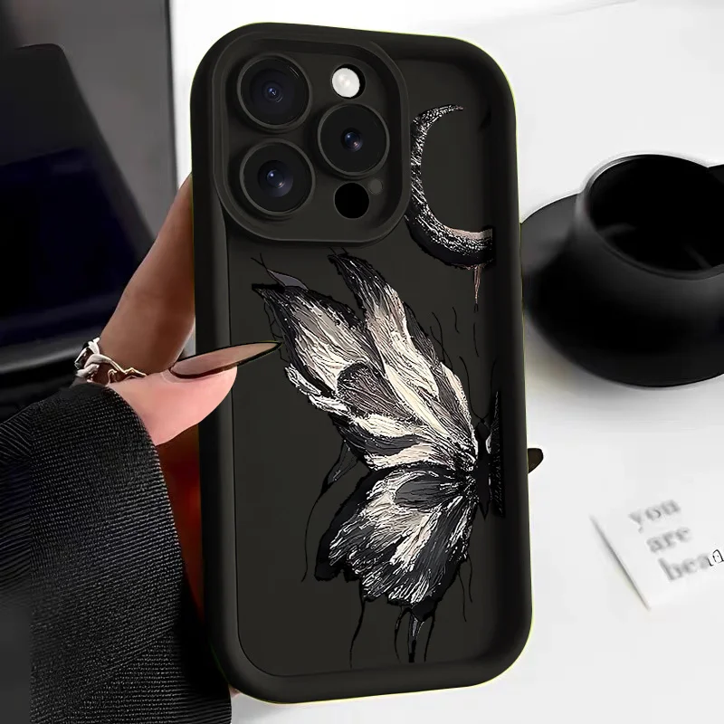 Funda de Mariposa Negra para Apple Iphone 15 14 13 12 11 Pro Max 15 Plus 15pro Max funda de teléfono de silicona de piel mate cómoda