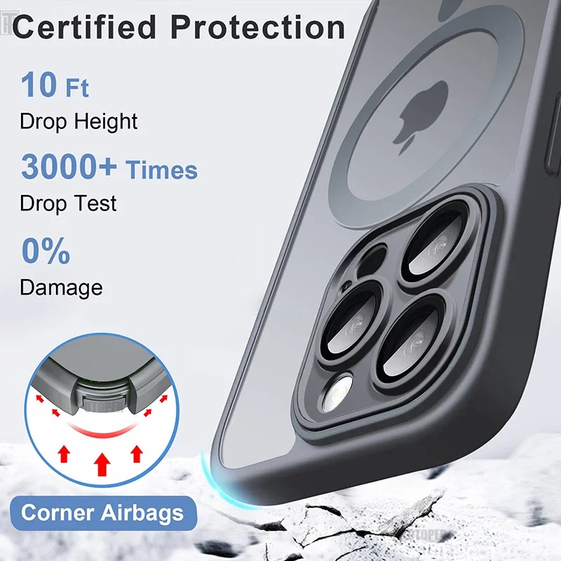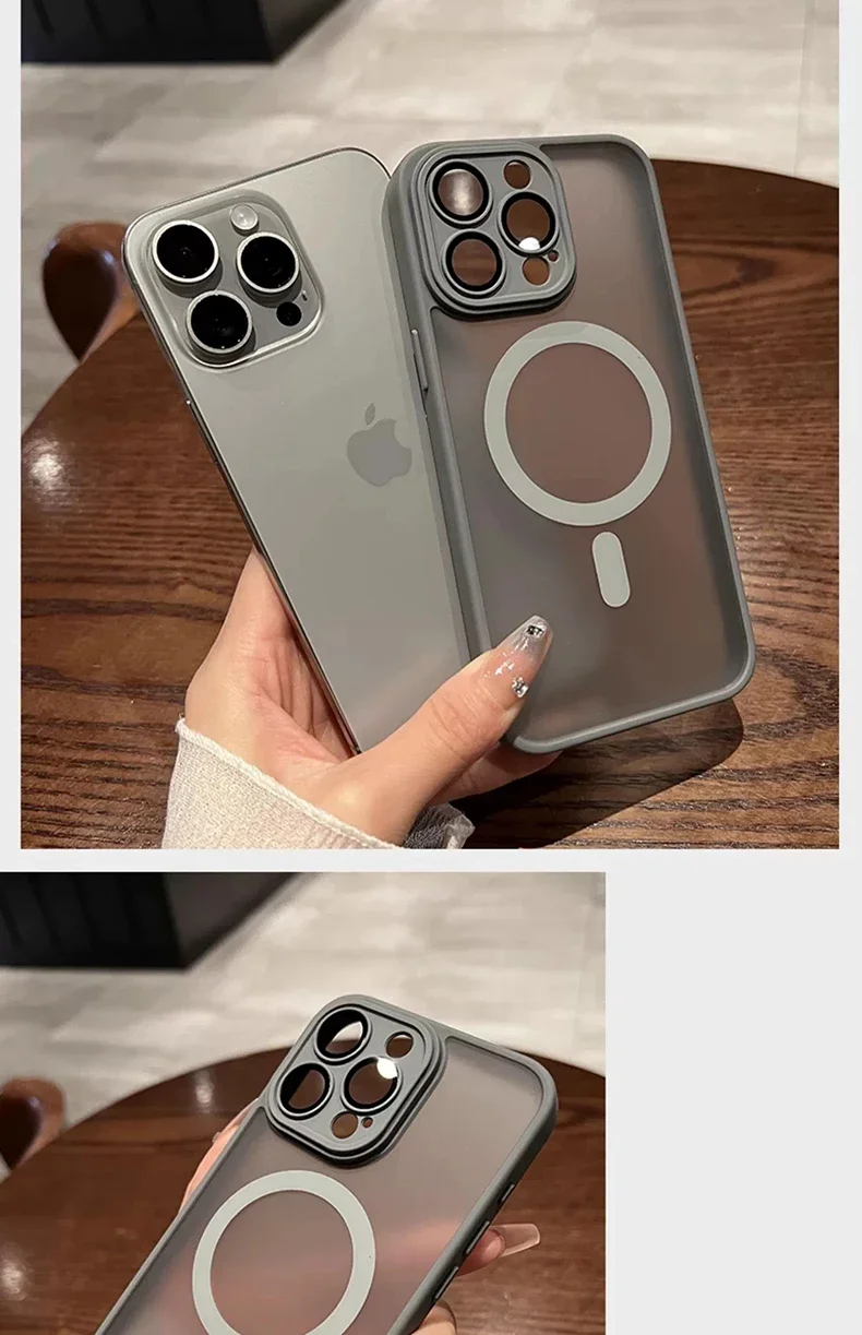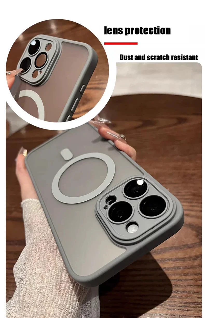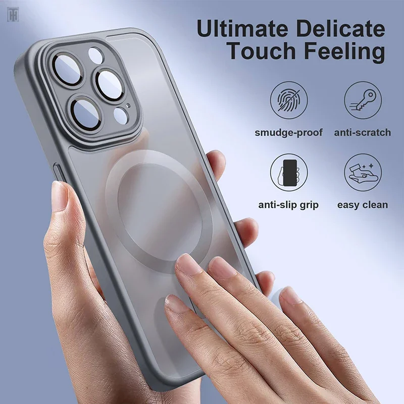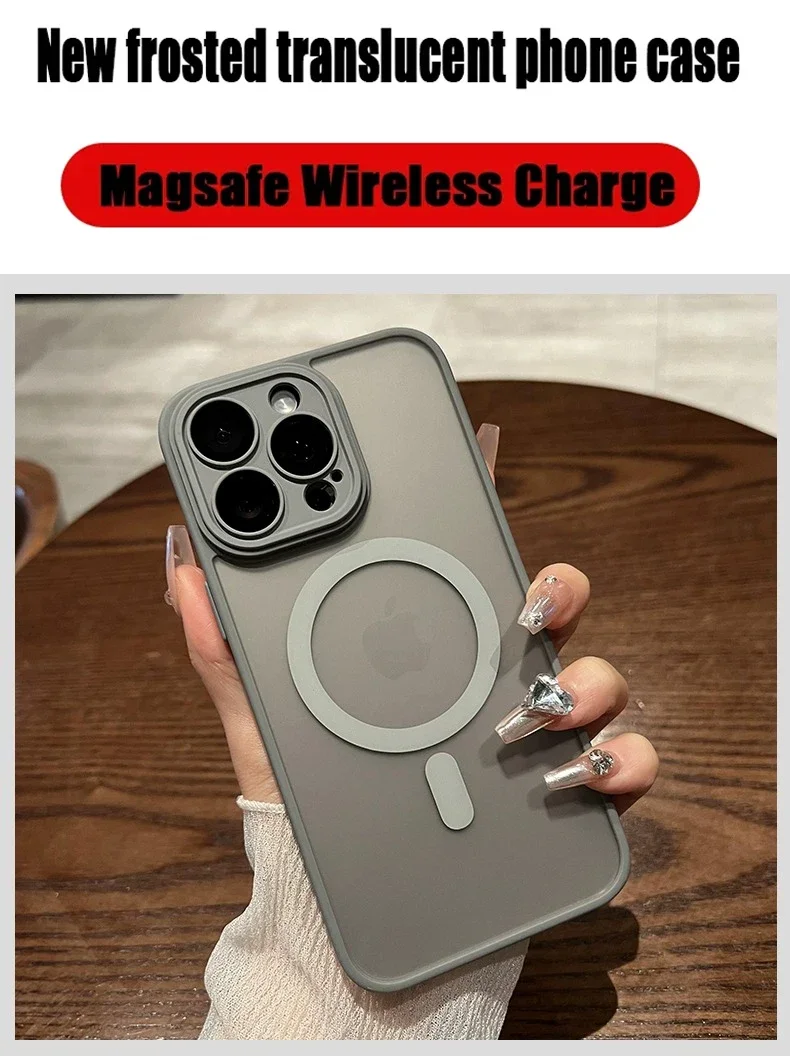 Comprar Funda mate antihuellas dactilares para iPhone 15, 14, 13, 12, 11 Pro Max Plus, Magsafe, carga inalámbrica magnética, cubierta de lente completa translúcida