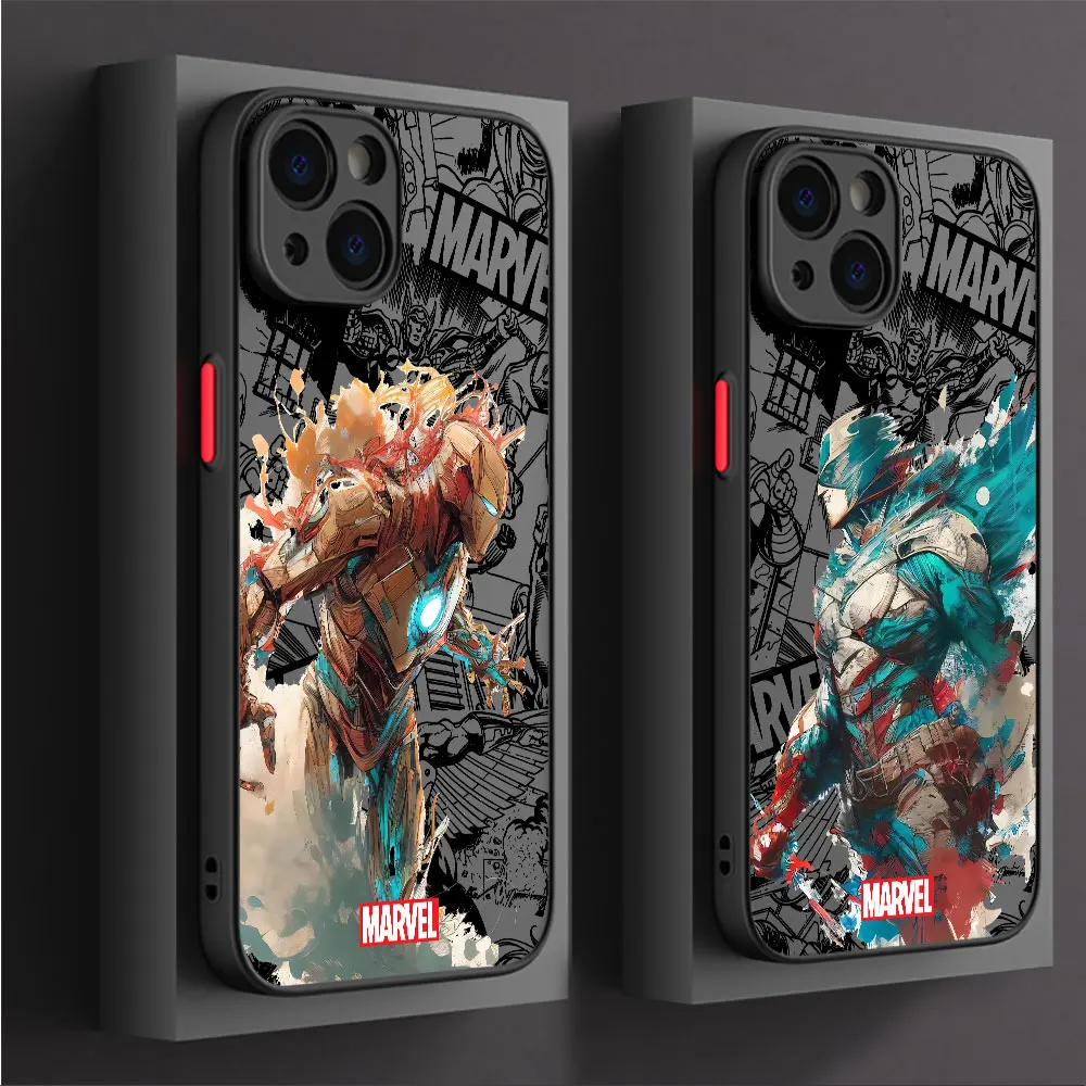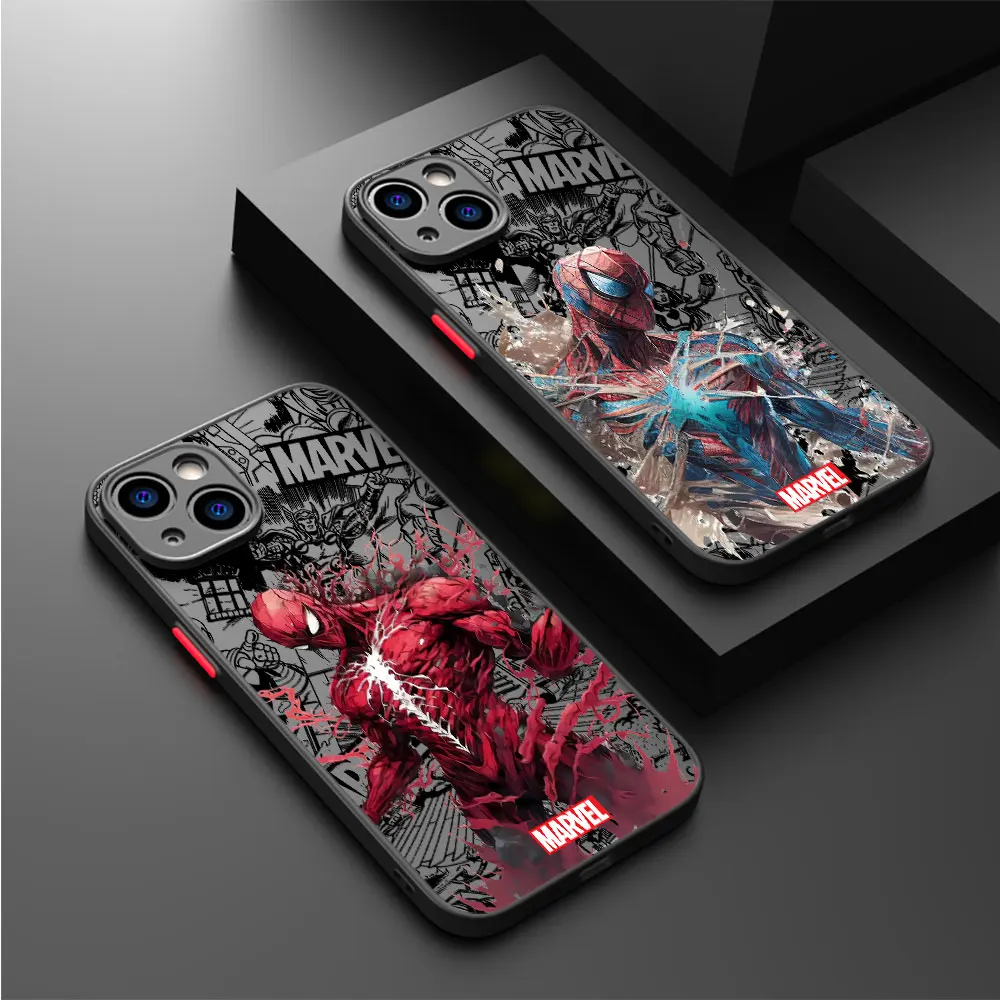 Comprar Funda mate para Apple iPhone 8 Plus XR X 12 14 Plus XS Max 7 15 Pro Max 11 Pro 13 Mini Marvel Retro Spiderman Ironman