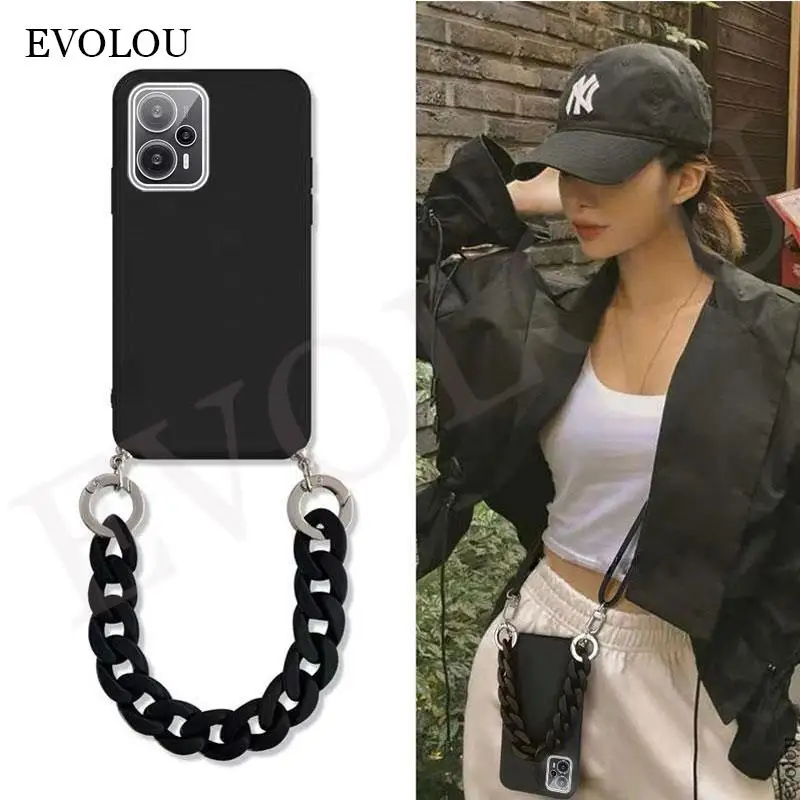 Funda mate con cordón de collar cruzado para Xiaomi POCO X6 Pro X 6 5G, funda de silicona suave con cadena de muñeca de mármol para POCO M6 Pro 4G