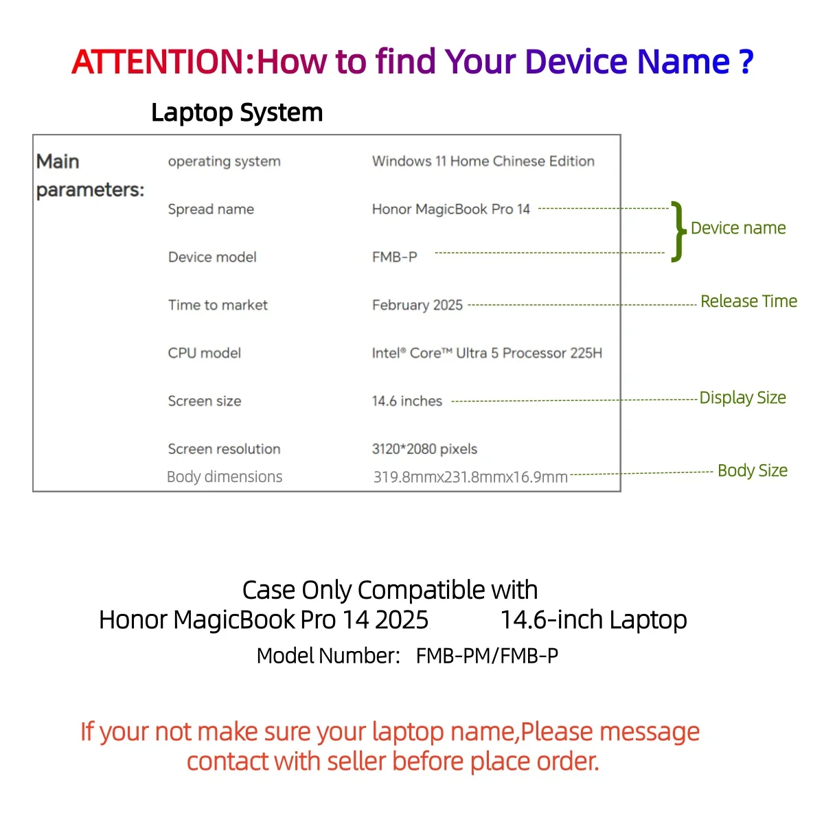 Funda solo apta para la computadora portátil Honor MagicBook Pro 14 2025 versión de 14,6 pulgadas;