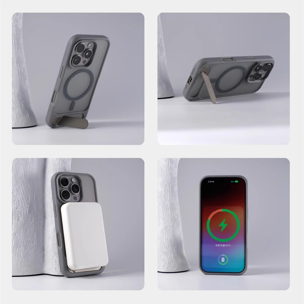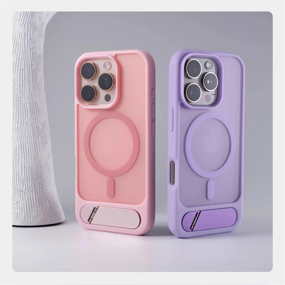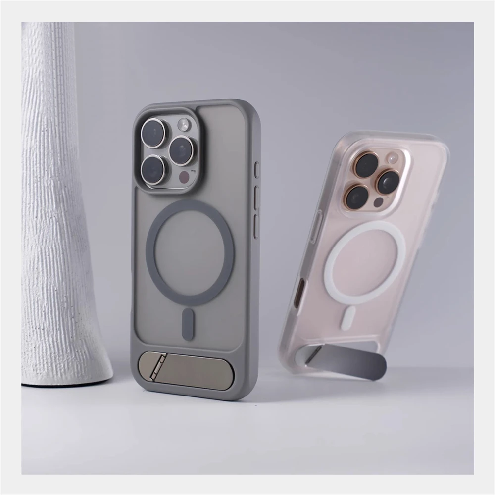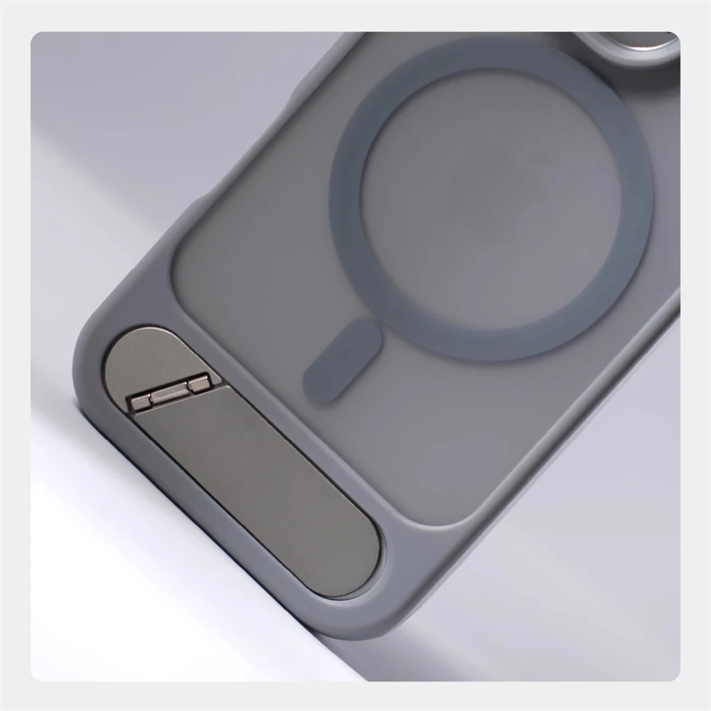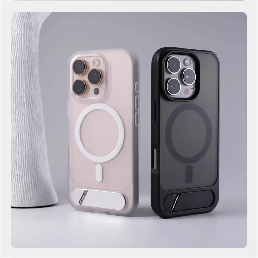 Comprar Funda mate magnética con soporte de Metal Invisible para iPhone 16 Pro Max 14 15 13 para carcasa de parachoques de carga inalámbrica MagSafe