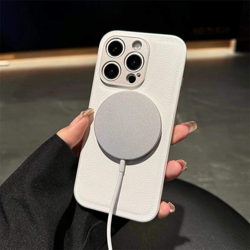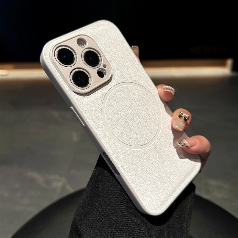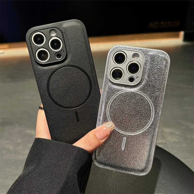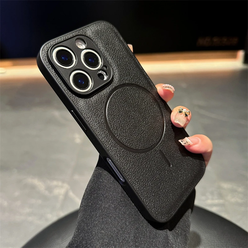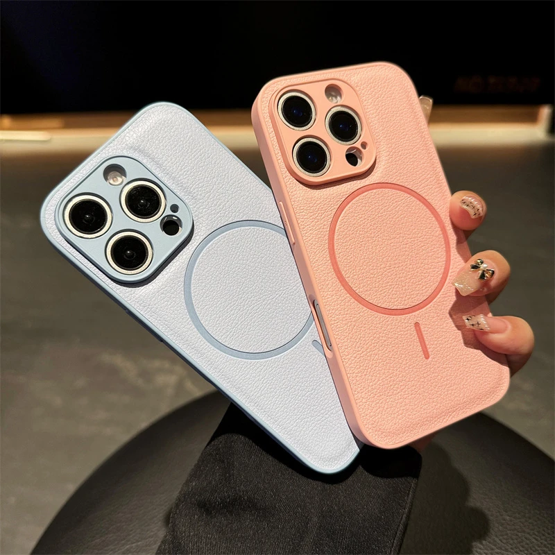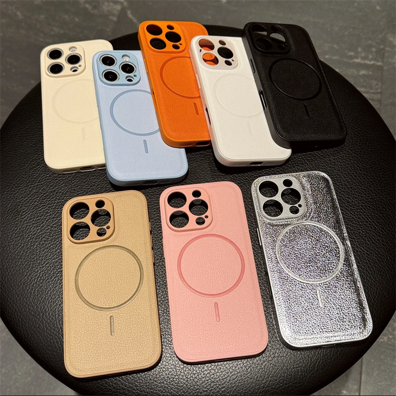 Funda mate Magsafe con textura de cuero Pu de Color sólido para iPhone 16 15 14 Plus 13 12 Pro Max cubierta de parachoques de carga inalámbrica magnética