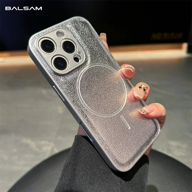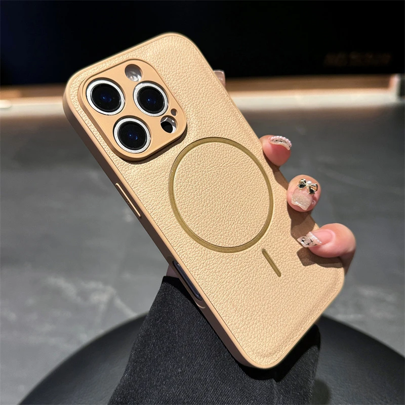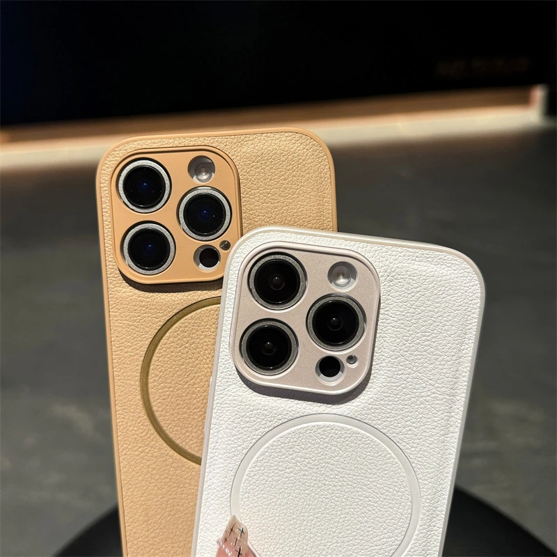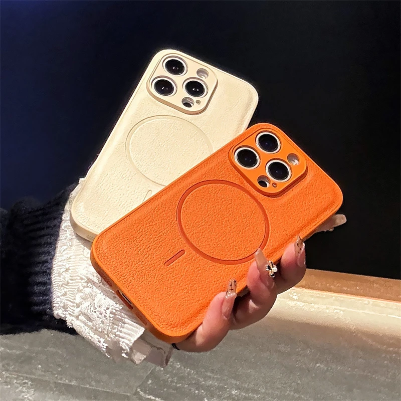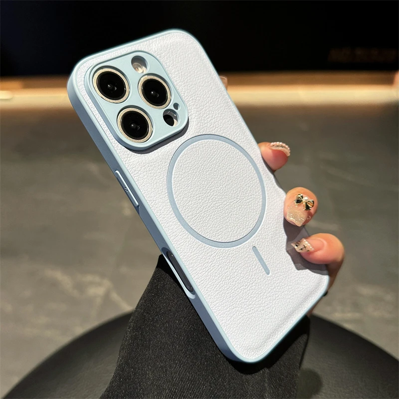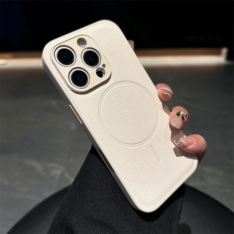 Funda mate Magsafe con textura de cuero Pu de Color sólido para iPhone 16 15 14 Plus 13 12 Pro Max cubierta de parachoques de carga inalámbrica magnética