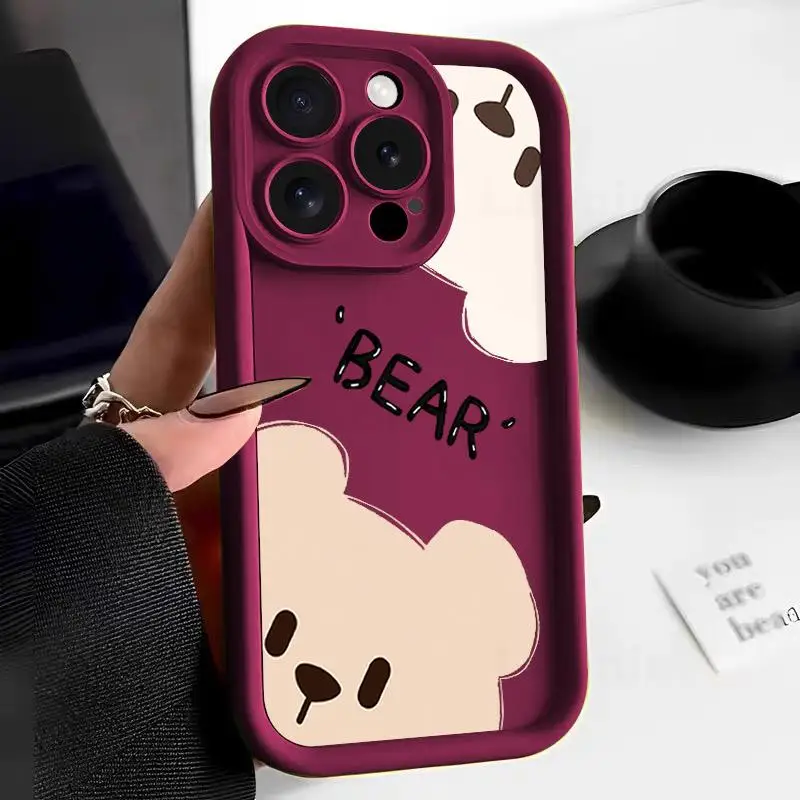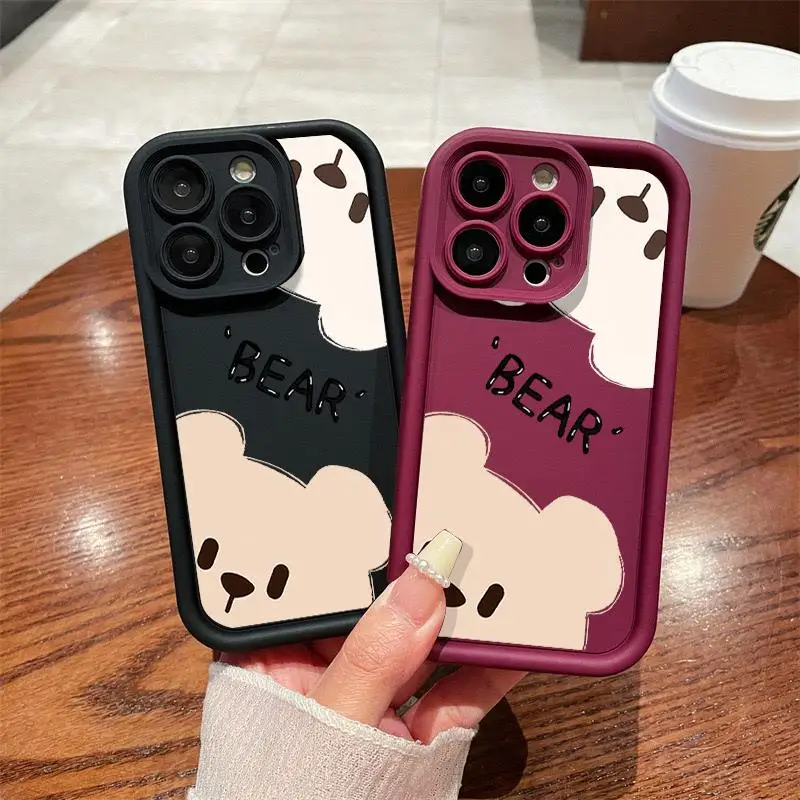 Funda mate de oso para Apple Iphone 15 14 13 12 11 Pro Max Mini SE X XR XS Max 7 8 Plus, funda de teléfono de silicona bonita y cómoda