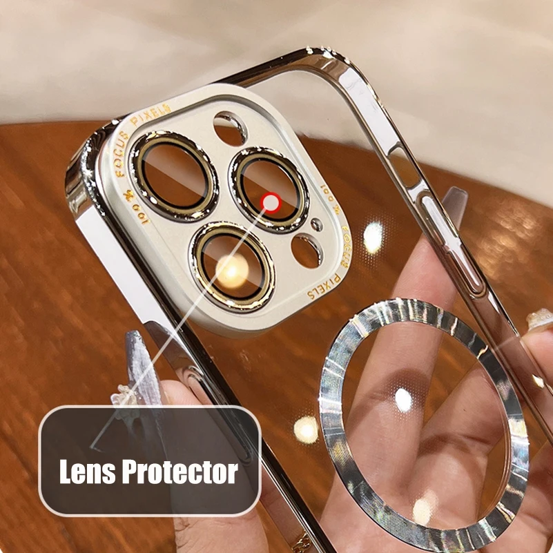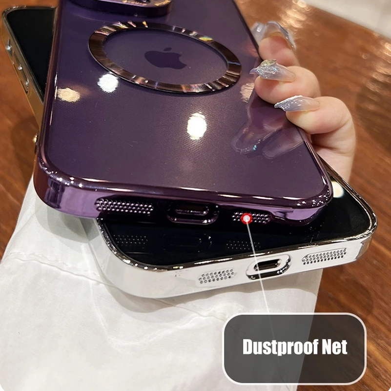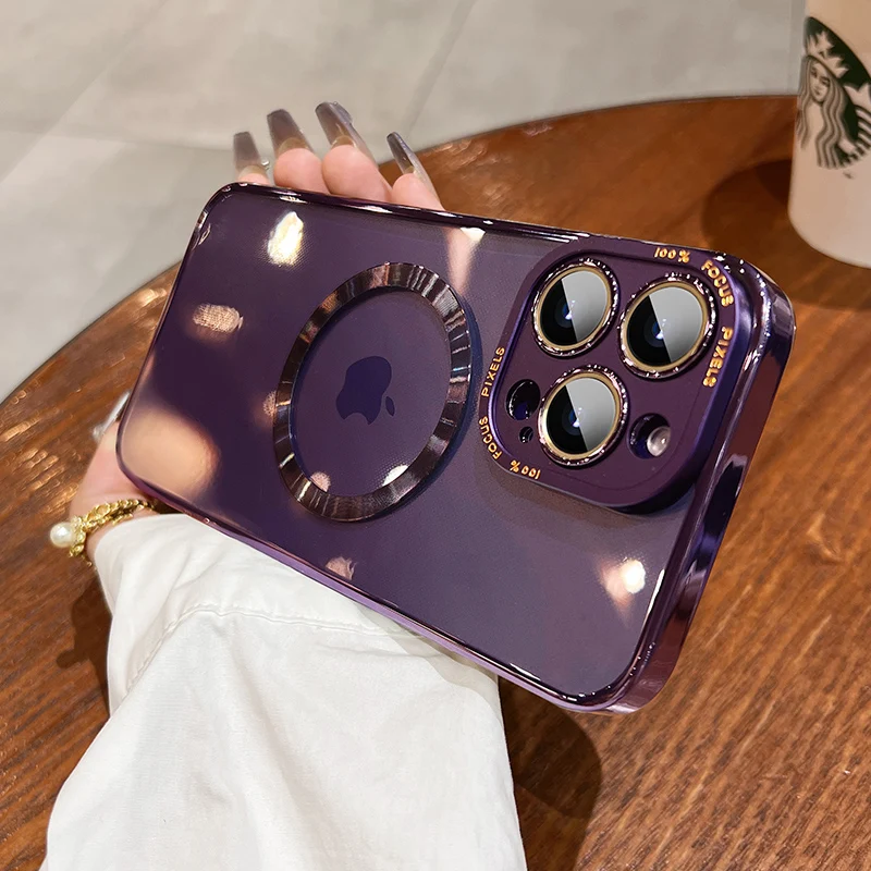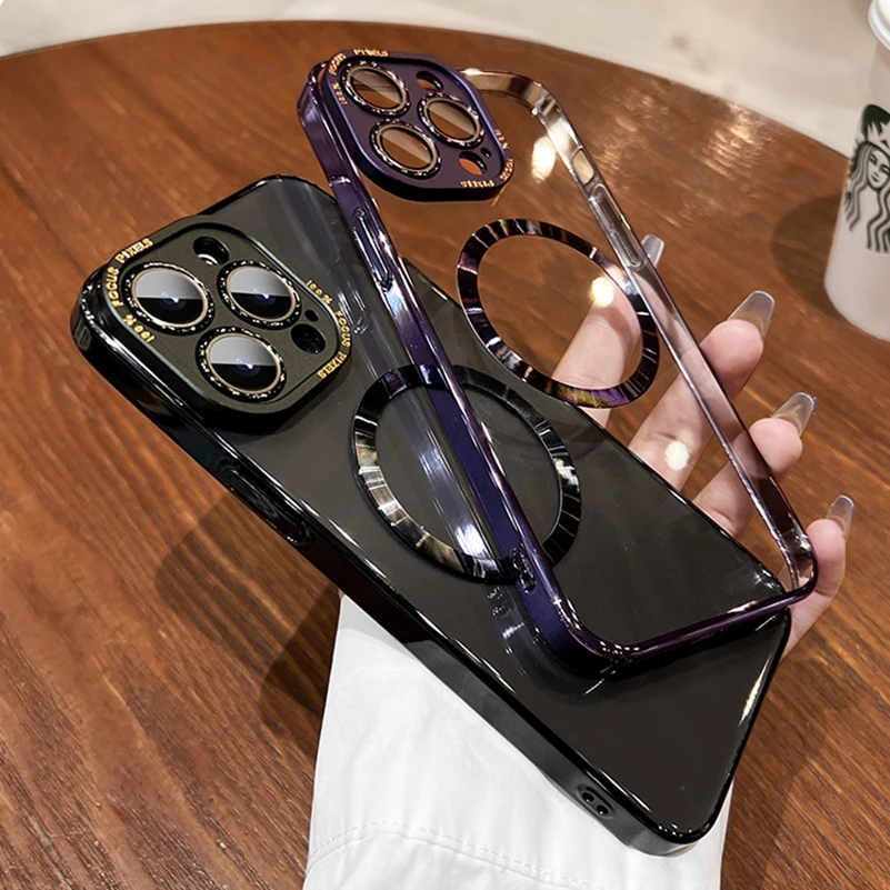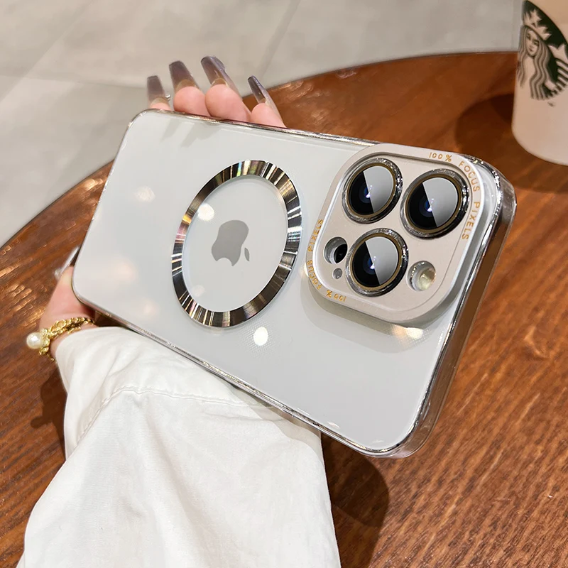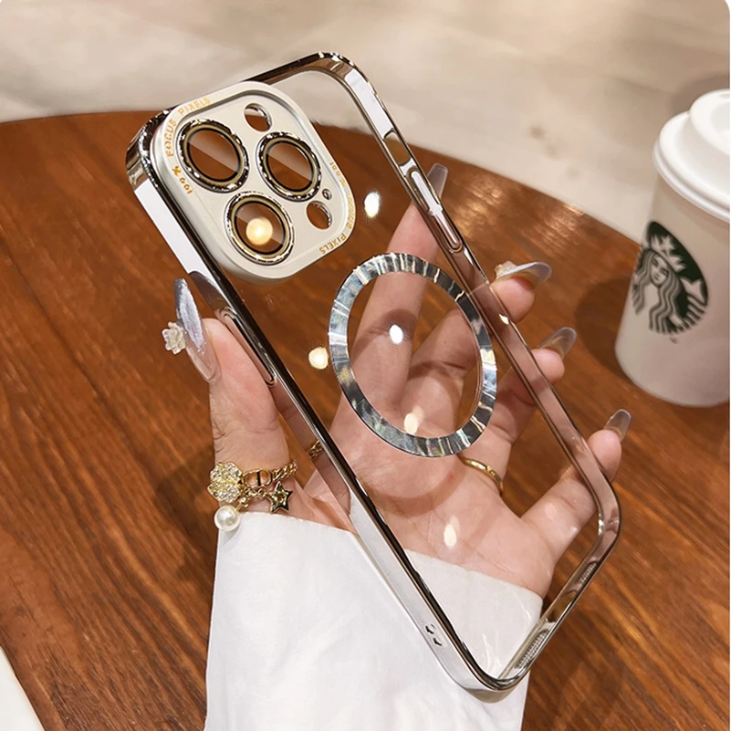 Comprar Funda de Metal Magsafe de lujo para iPhone 15 Pro Max 15 Plus, cubierta de carga inalámbrica de acrílico transparente para iPhone 12 13 14 Pro Max