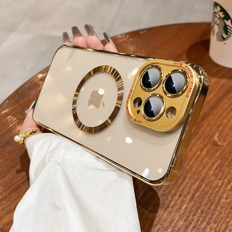 Comprar Funda de Metal Magsafe de lujo para iPhone 15 Pro Max 15 Plus, cubierta de carga inalámbrica de acrílico transparente para iPhone 12 13 14 Pro Max