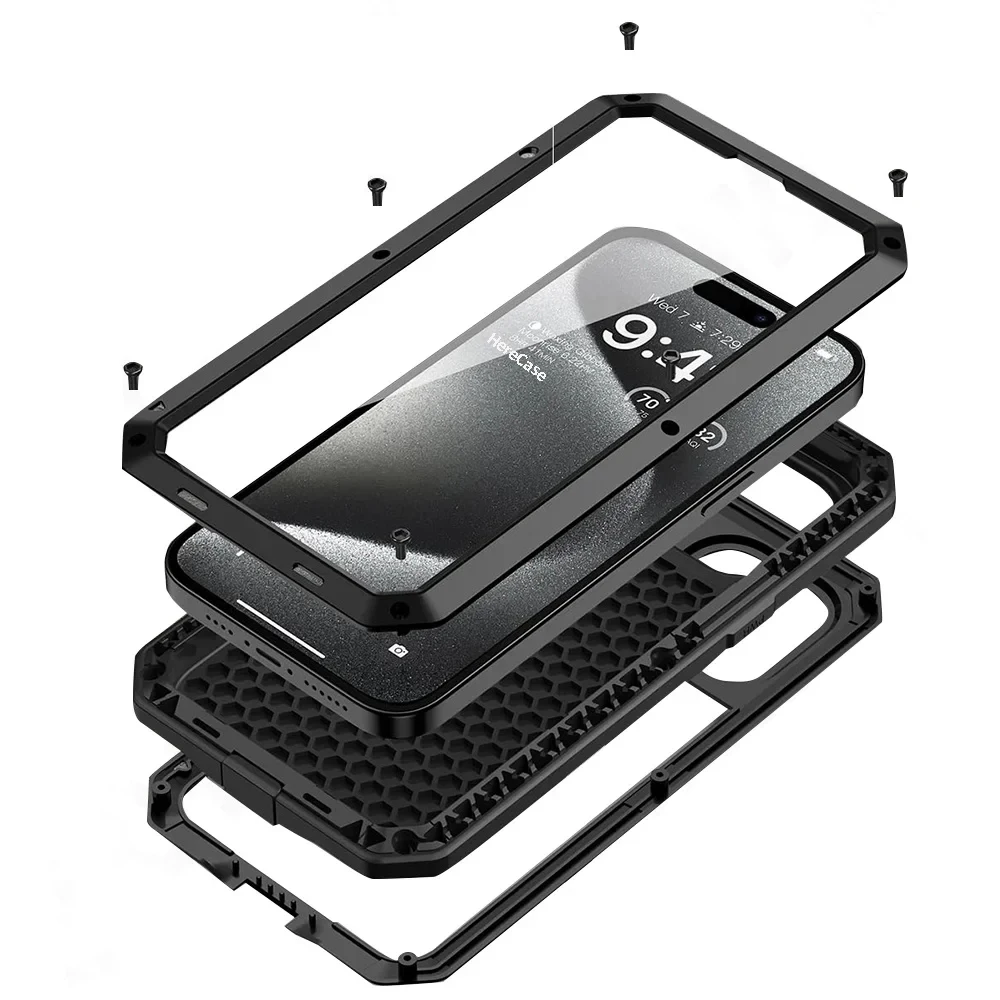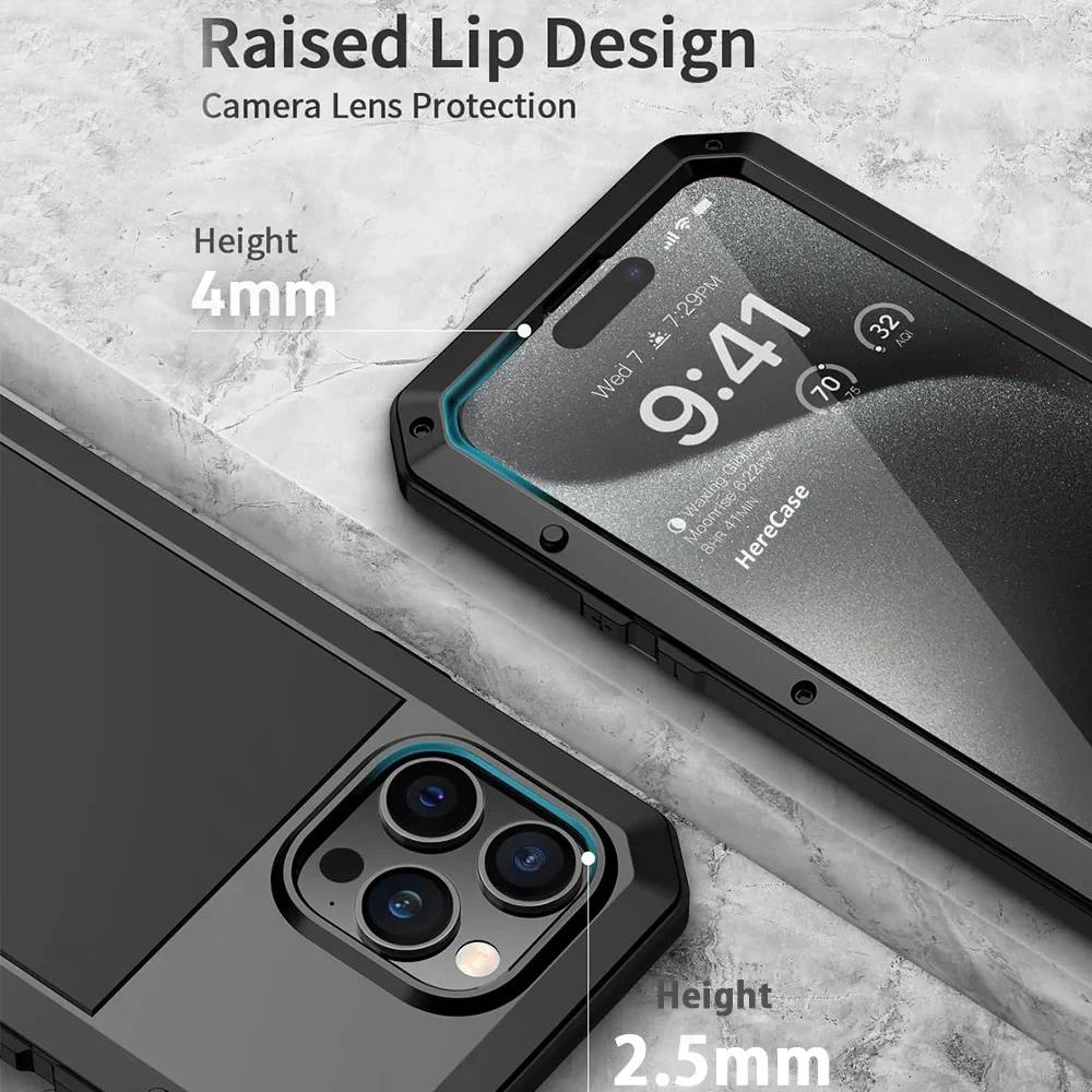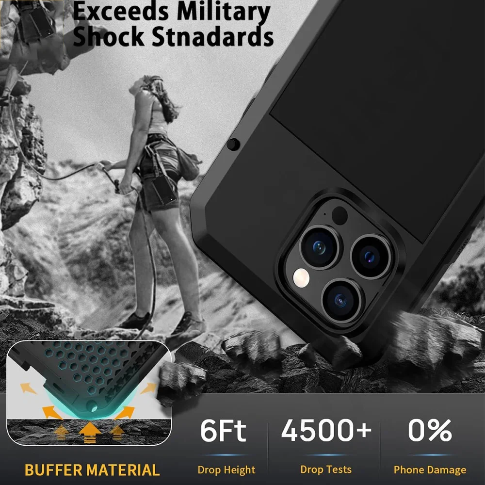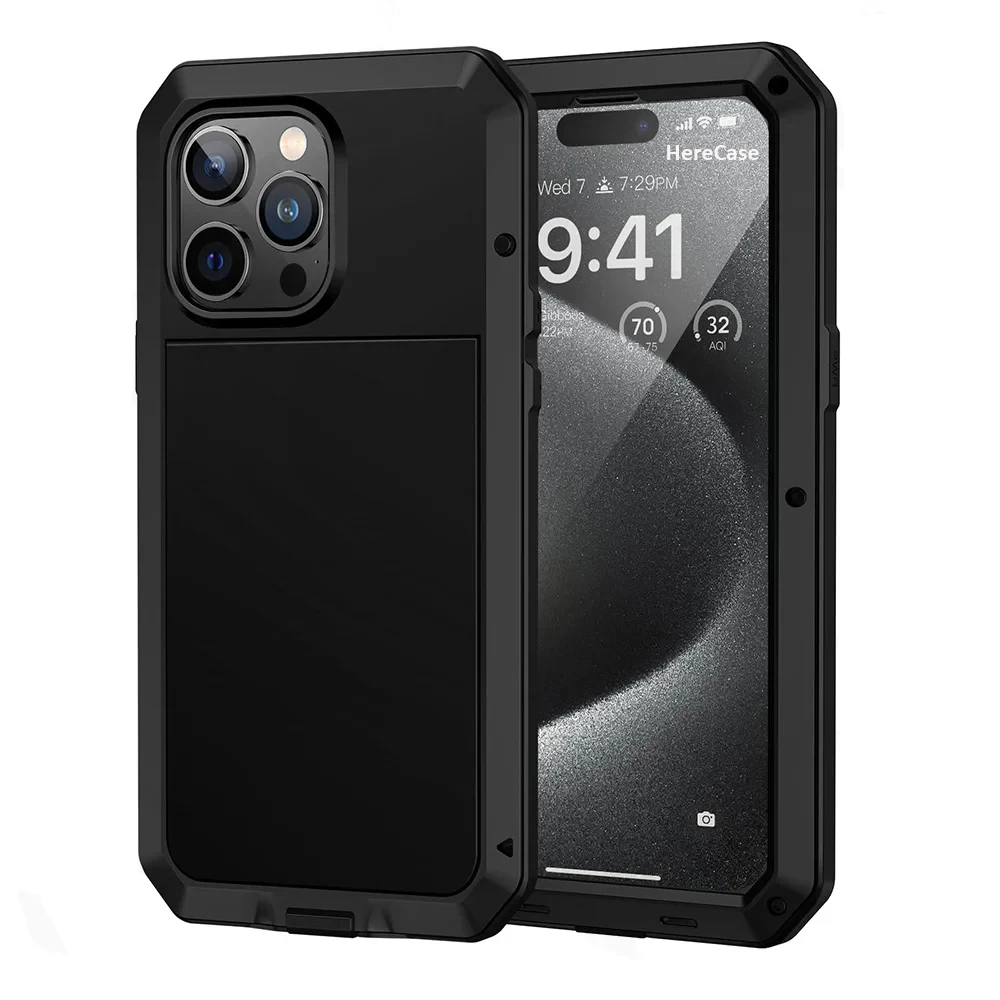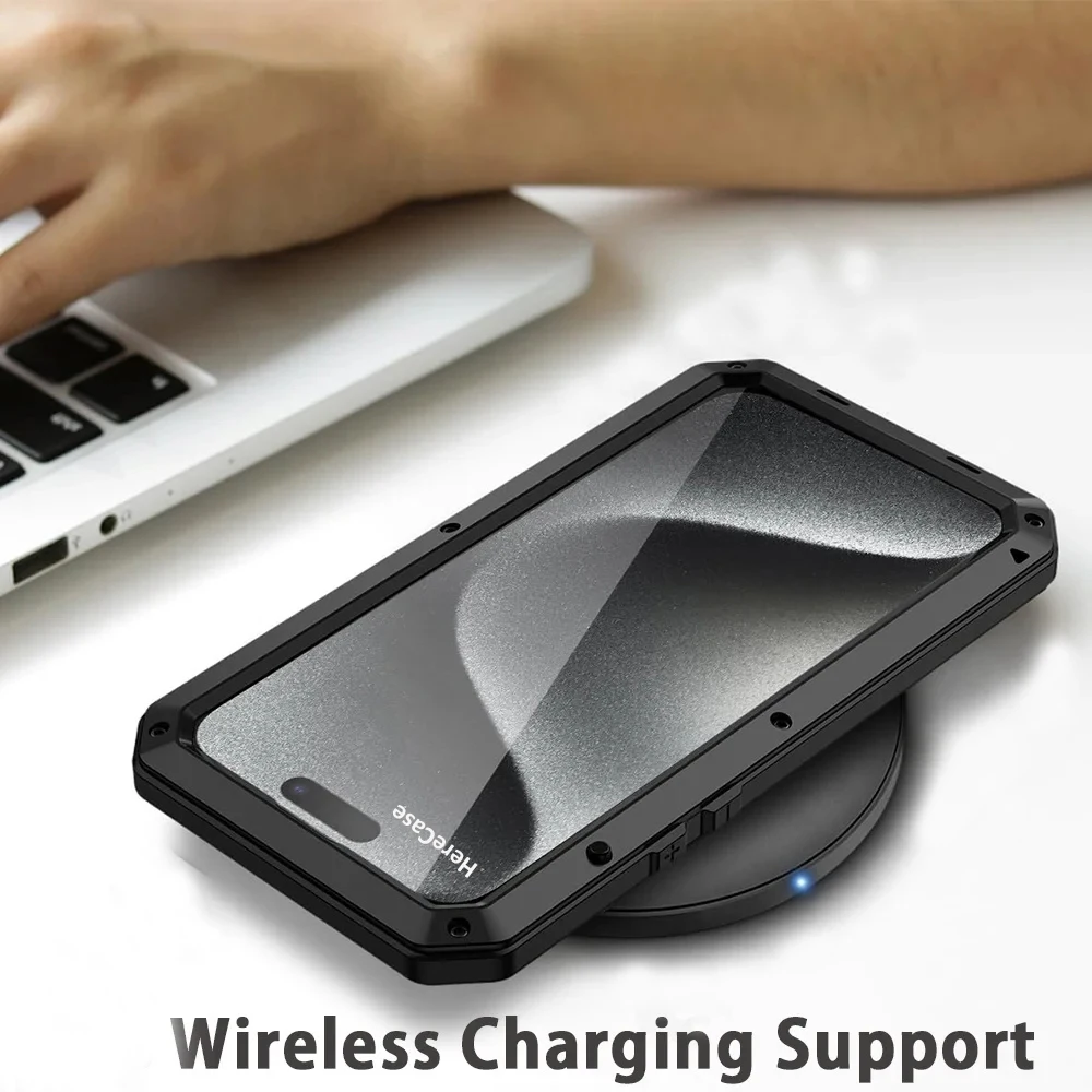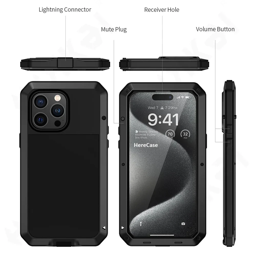 Comprar Funda de Metal resistente al agua para iPhone 11, 12, 13, 14, 15 Pro Max XS XR 6, 7, 8 Plus, cubierta protectora de armadura a prueba de golpes de cuerpo completo resistente