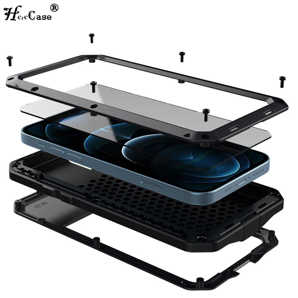Funda de Metal resistente al agua para iPhone, carcasa protectora de armadura a prueba de golpes de cuerpo completo, para 11 Pro Max, 11 Pro, Apple 11, 360