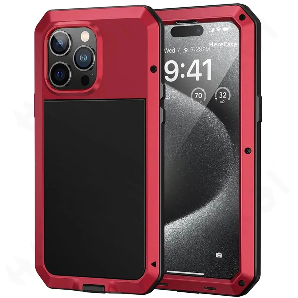 Comprar Funda de Metal resistente al agua para móvil, carcasa protectora de armadura a prueba de golpes para iPhone 15 Pro Max, 15 Plus, Apple 15, 360