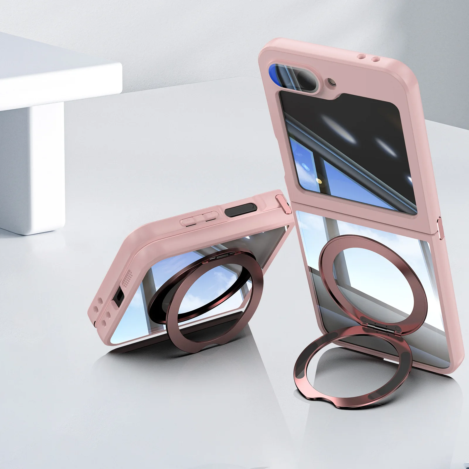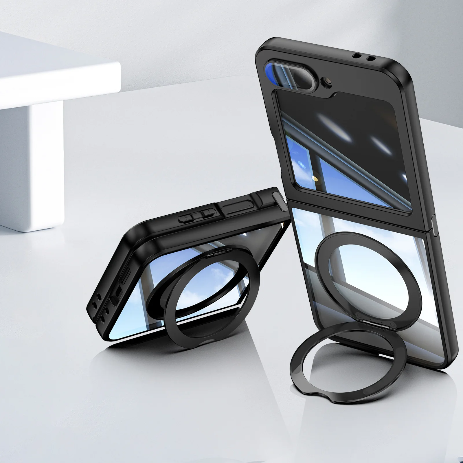 Funda de Metal con soporte magnético giratorio de 360 ° para Samsung Galaxy Z Flip 6 5, carcasa de TPU a prueba de golpes con carga inalámbrica