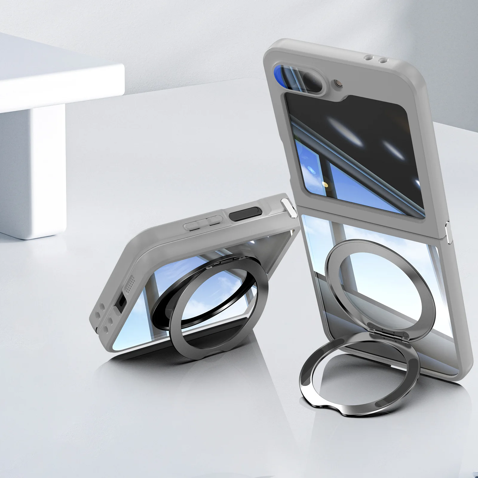 Funda con soporte magnético de Metal giratorio de 360 ° para Samsung Galaxy Z Flip 6 5 carga inalámbrica a prueba de golpes funda de TPU para Galaxy Flip6 Shell