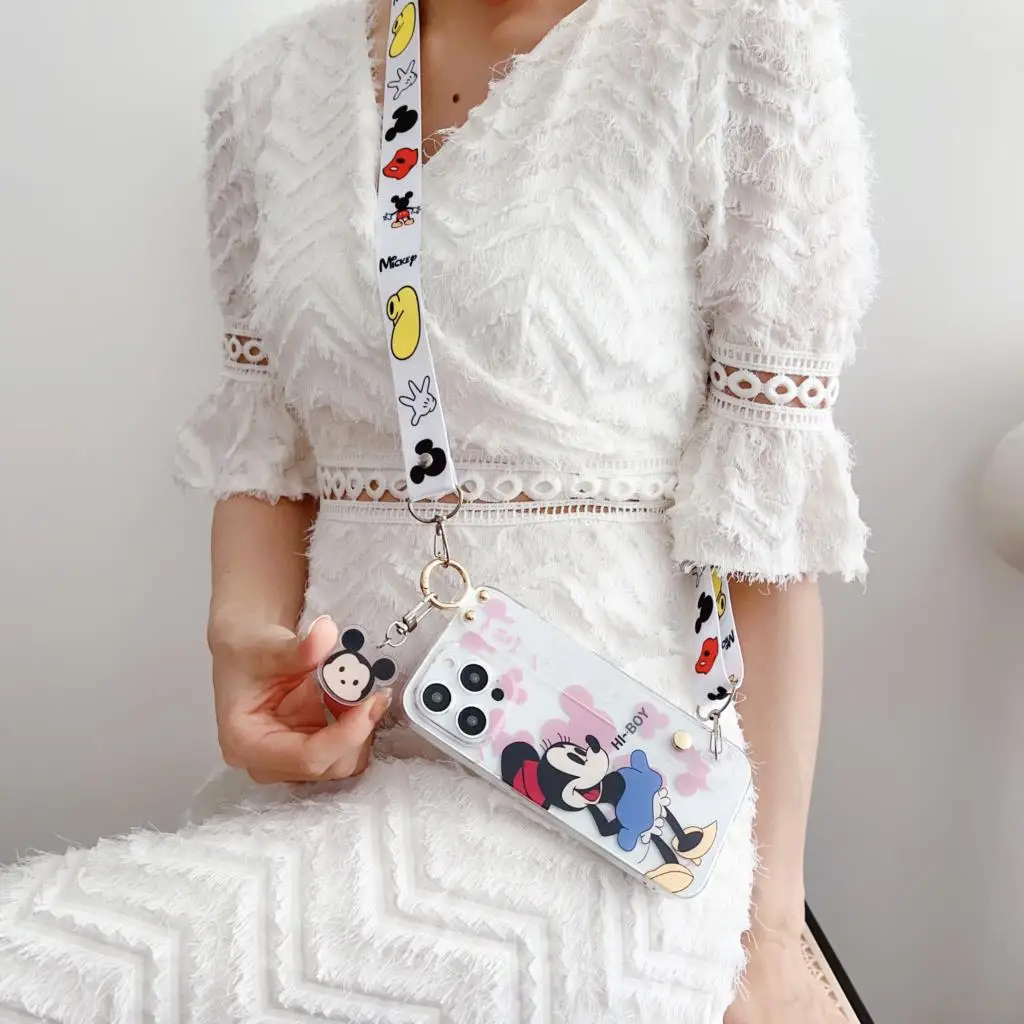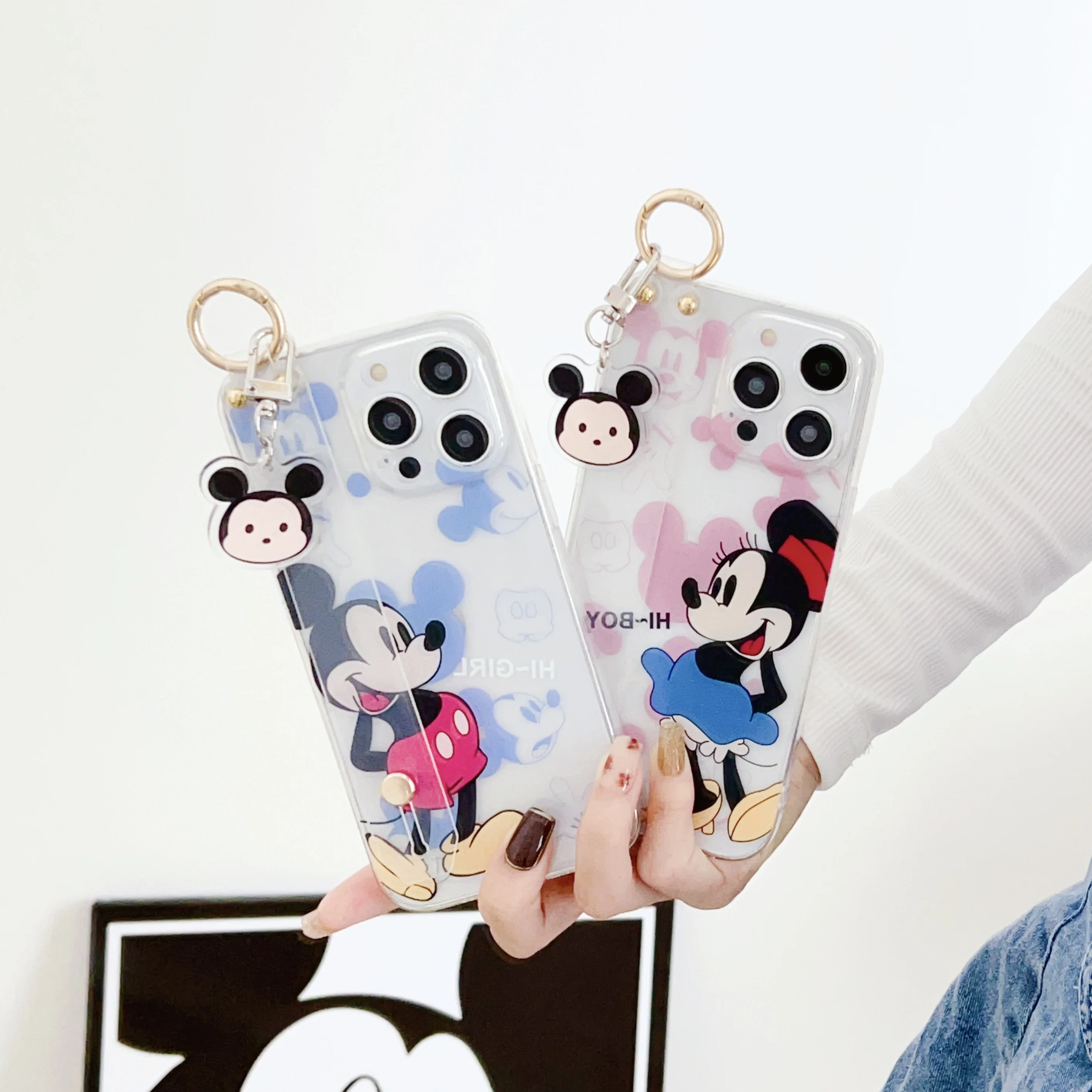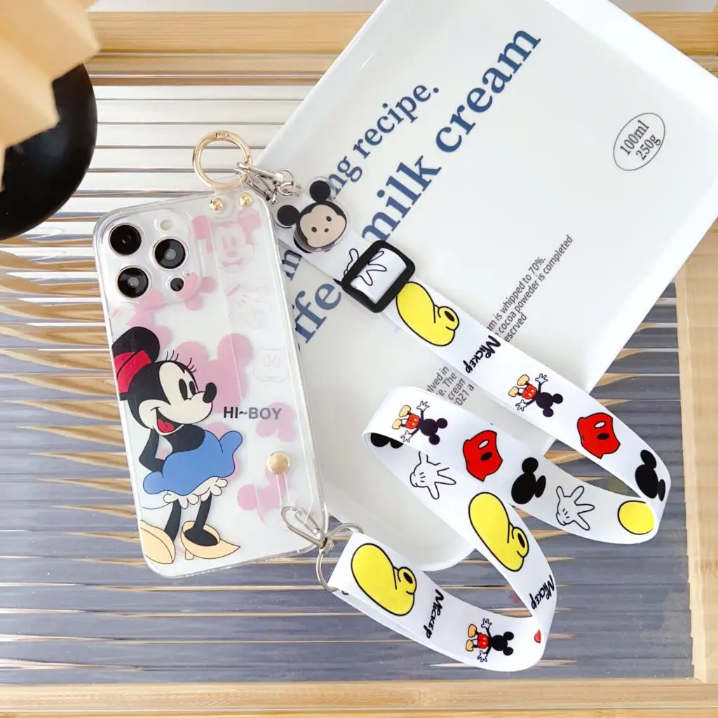 Funda de Minnie Mickey con adorno para Samsung Galaxy, correa de muñeca, S8, S9, S10, S20, S21, S22, S23 Plus, Ultra, S21FE, Note 9, 10, 20