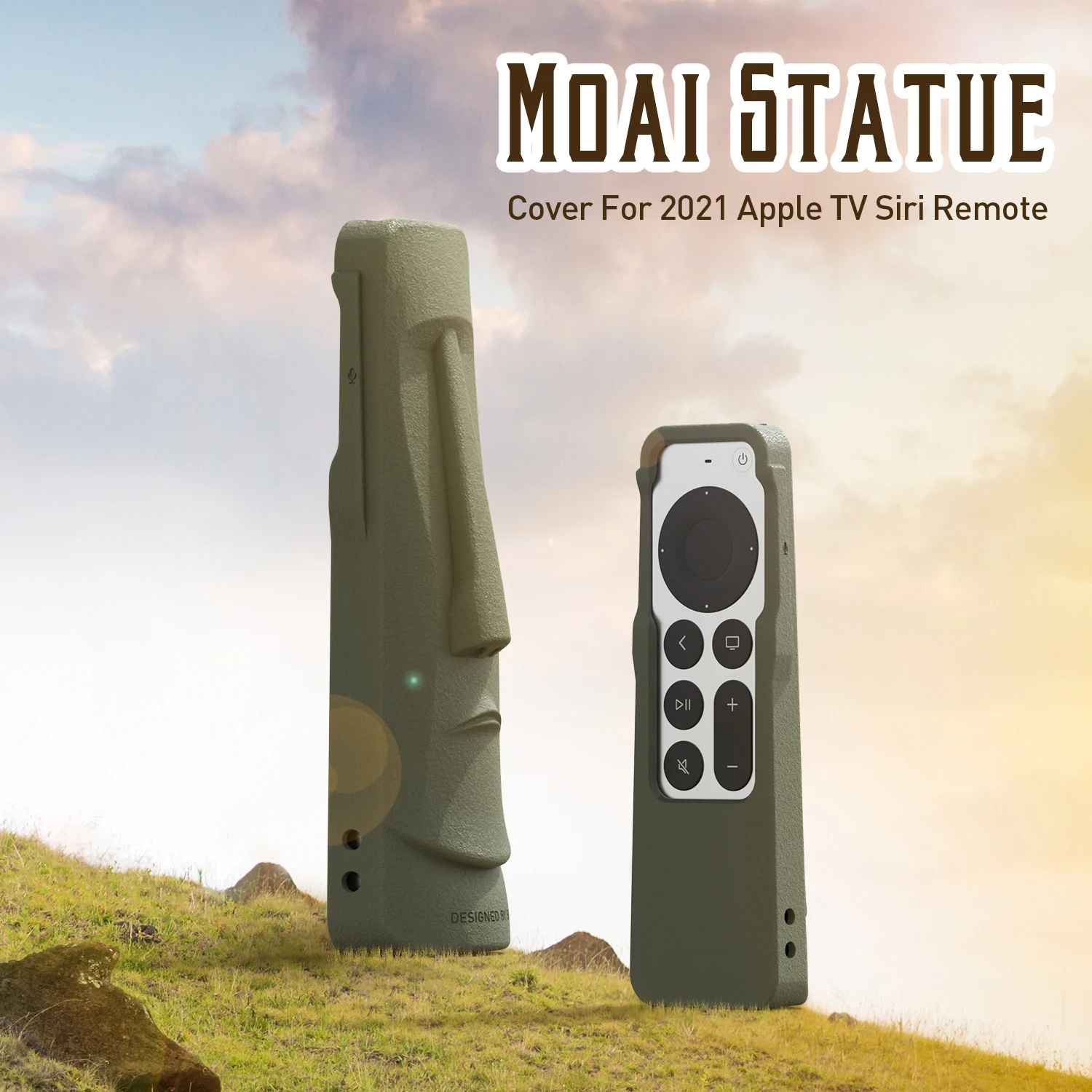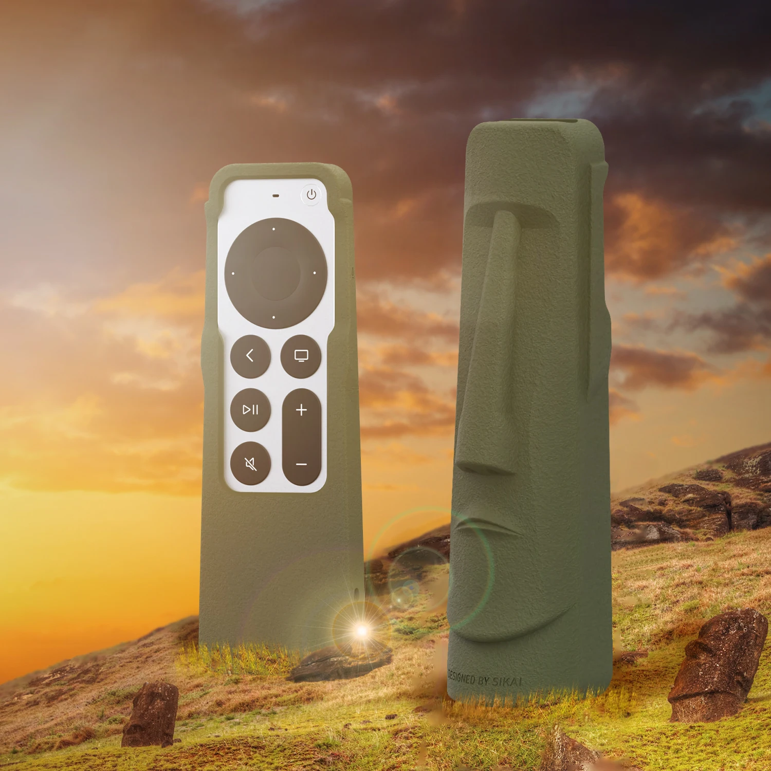 SIKAI Moai Statues cubierta de isla de Pascua para Apple TV 4K Siri cubierta de Control remoto SIKAI para almacenamiento remoto Siri con funda Airtag