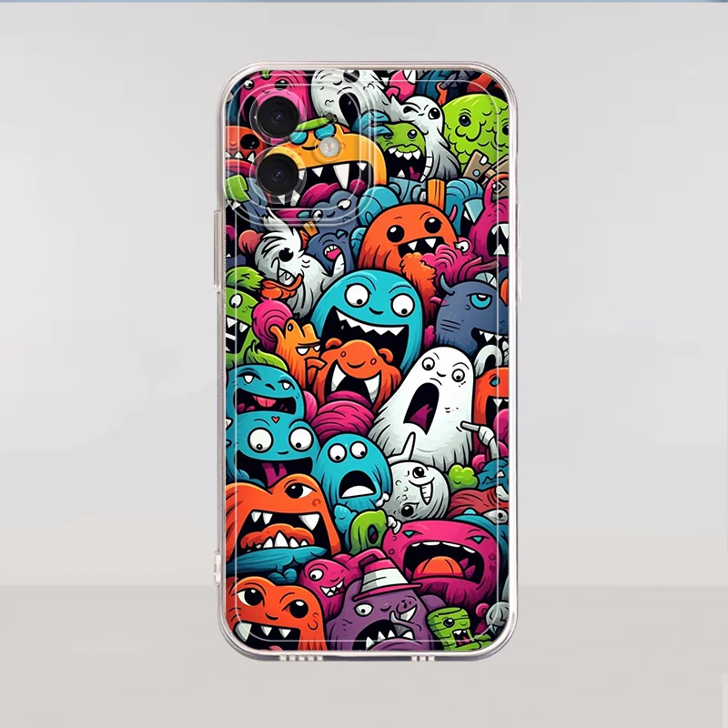 Funda Monster Graffiti de moda para iPhone 13 12 11 Pro MAX 16 15 14 Plus XR 12 Mini 7 8 16e, funda suave para teléfono